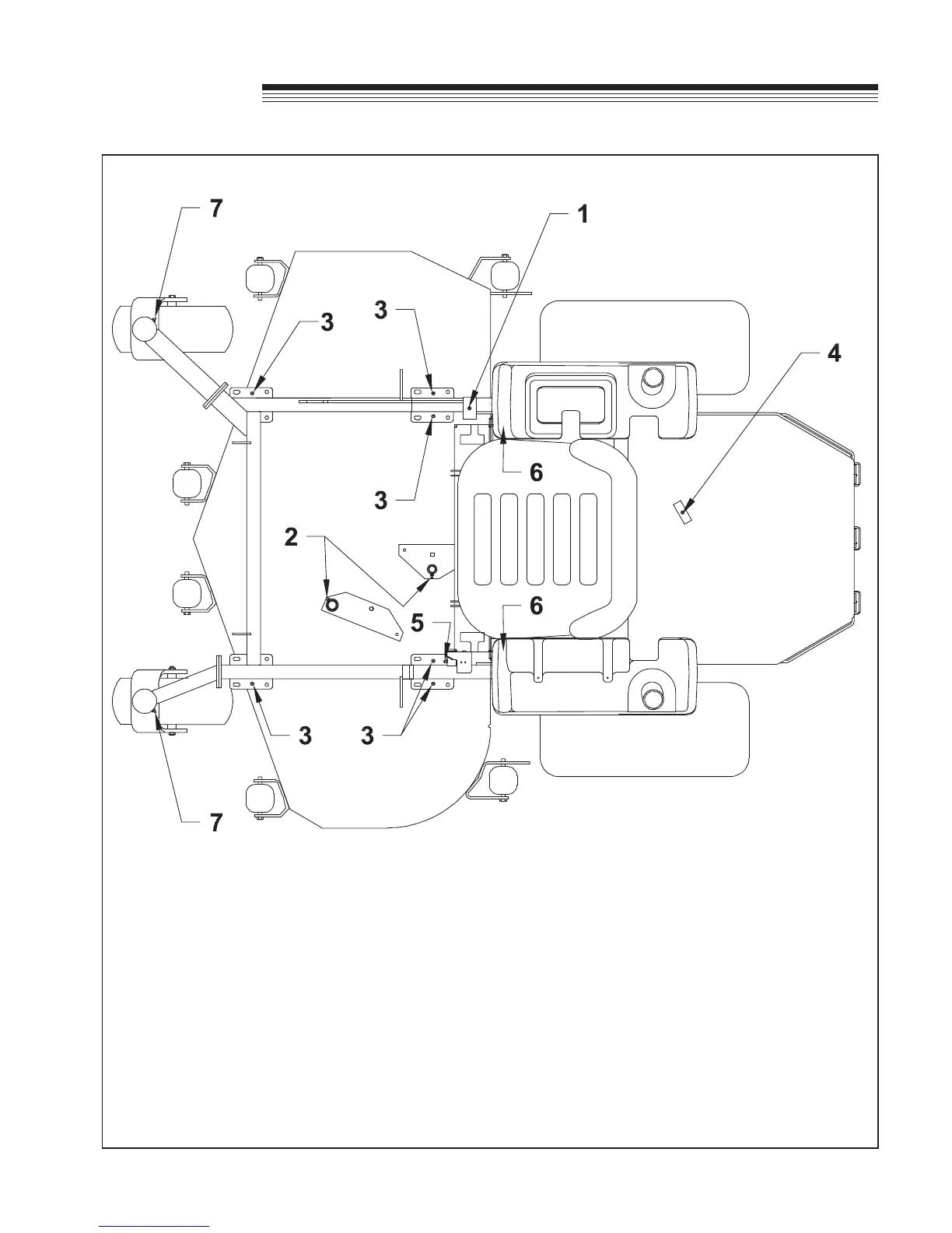 6. Schubarme (2 Stellen an der Rückseite des Mähdecks unter jedem Kraftstofftank)