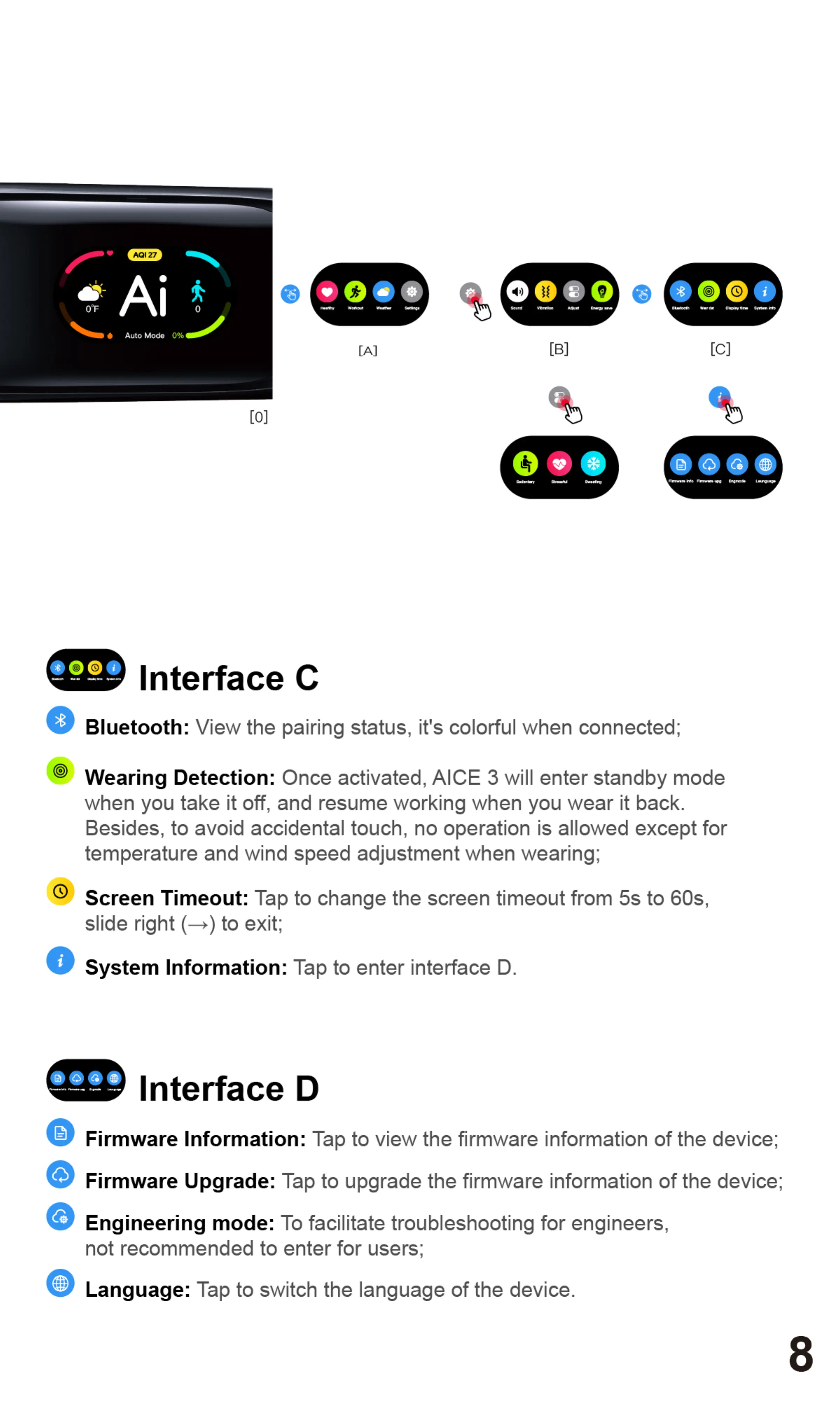 Wearing Detection: Once activated, AICE 3 will enter standby mode