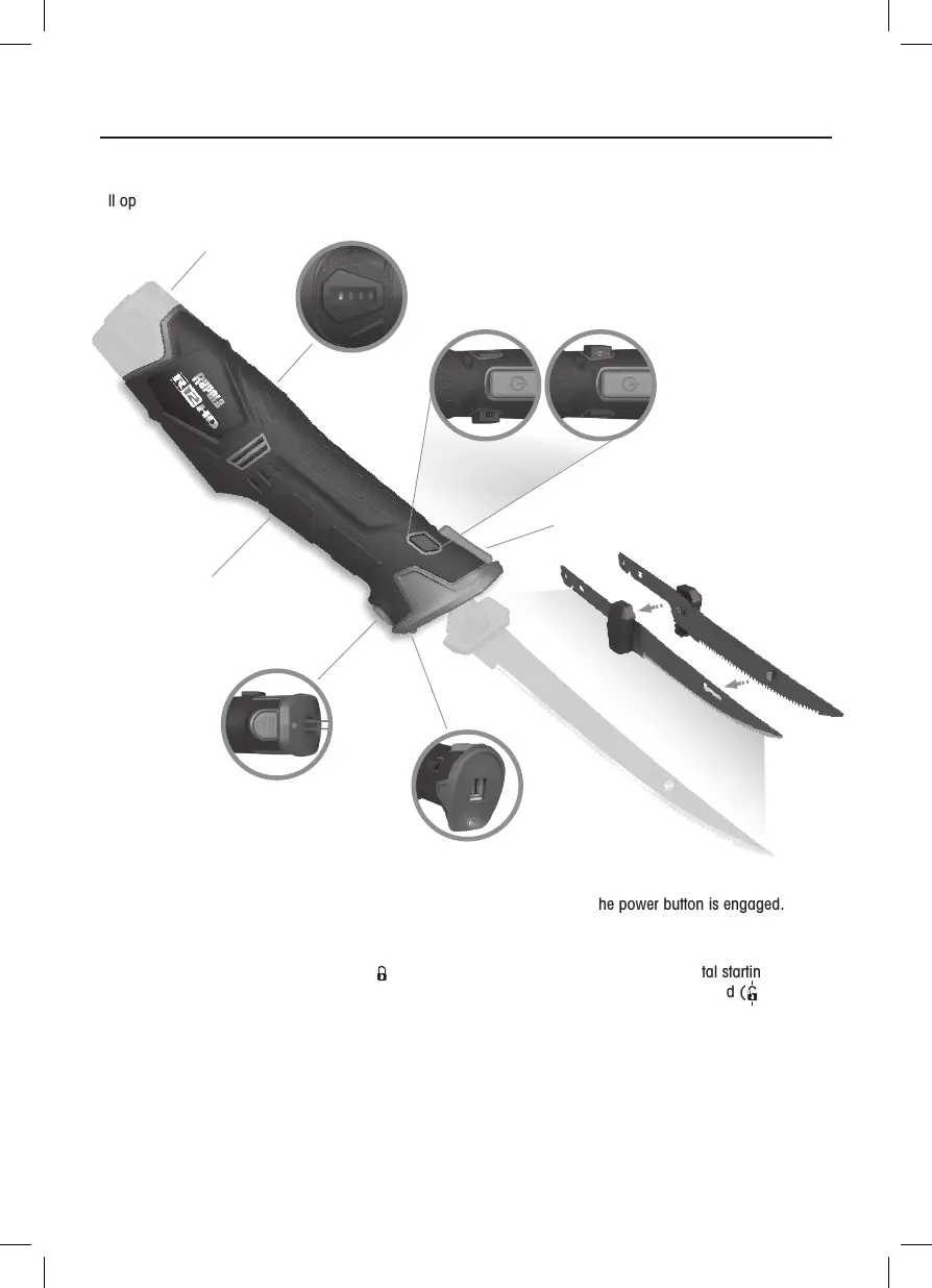 not in use. When you want to use the knife, you must push the power button lock to the unlocked ( ) position.