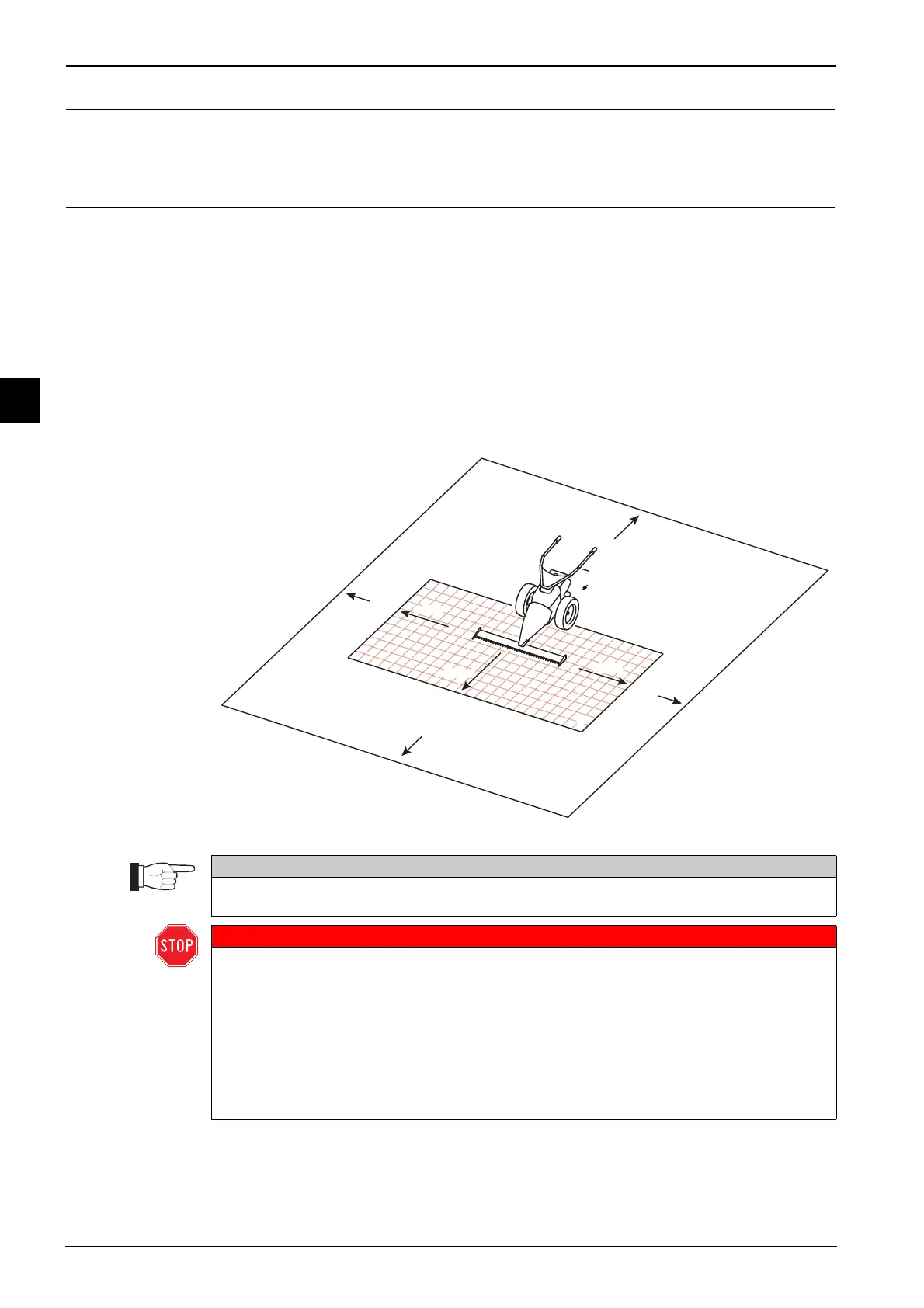 • nach hinten bis zur Radachse der Maschine.