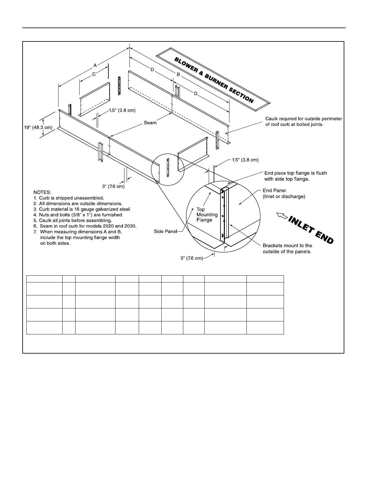 curb has been installed, the air handler may be placed on the curb. There must be a 1/8" (.3 cm) x 2" (5.1