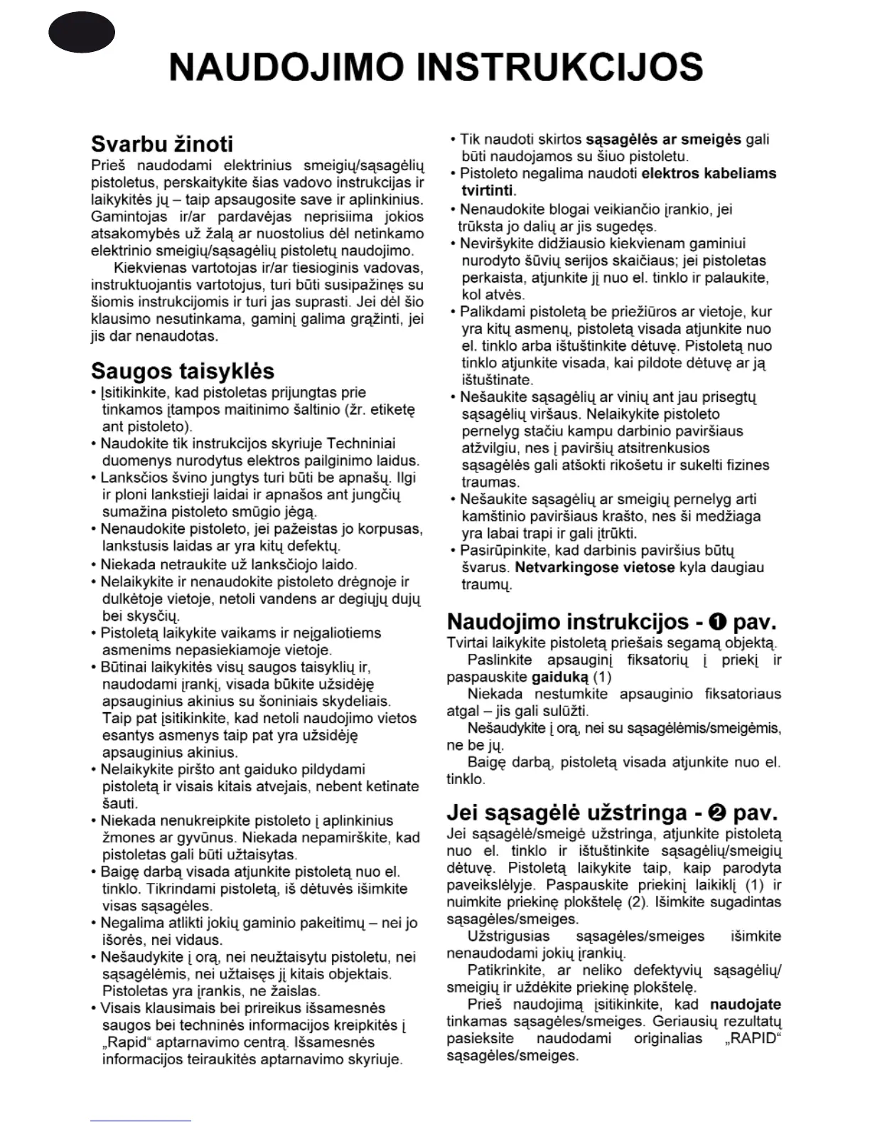 Elektriniai smeigių/sąsagėlių pistoletai „Rapid 553, 606, 213, 214“