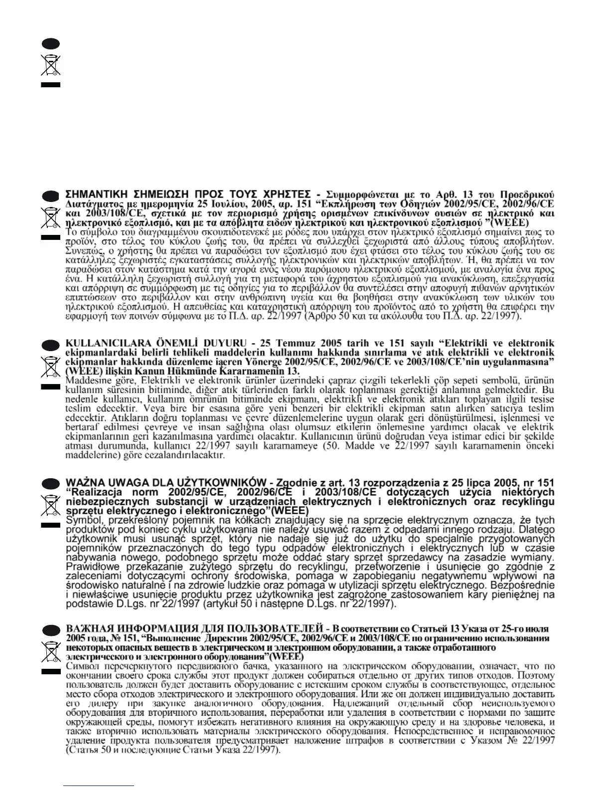AVISO IMPORTANTE AOS UTILIZADORES - Em conformidade com o Art. 13 do Decreto-Lei n.º 151 de 25 de Julho de 2005