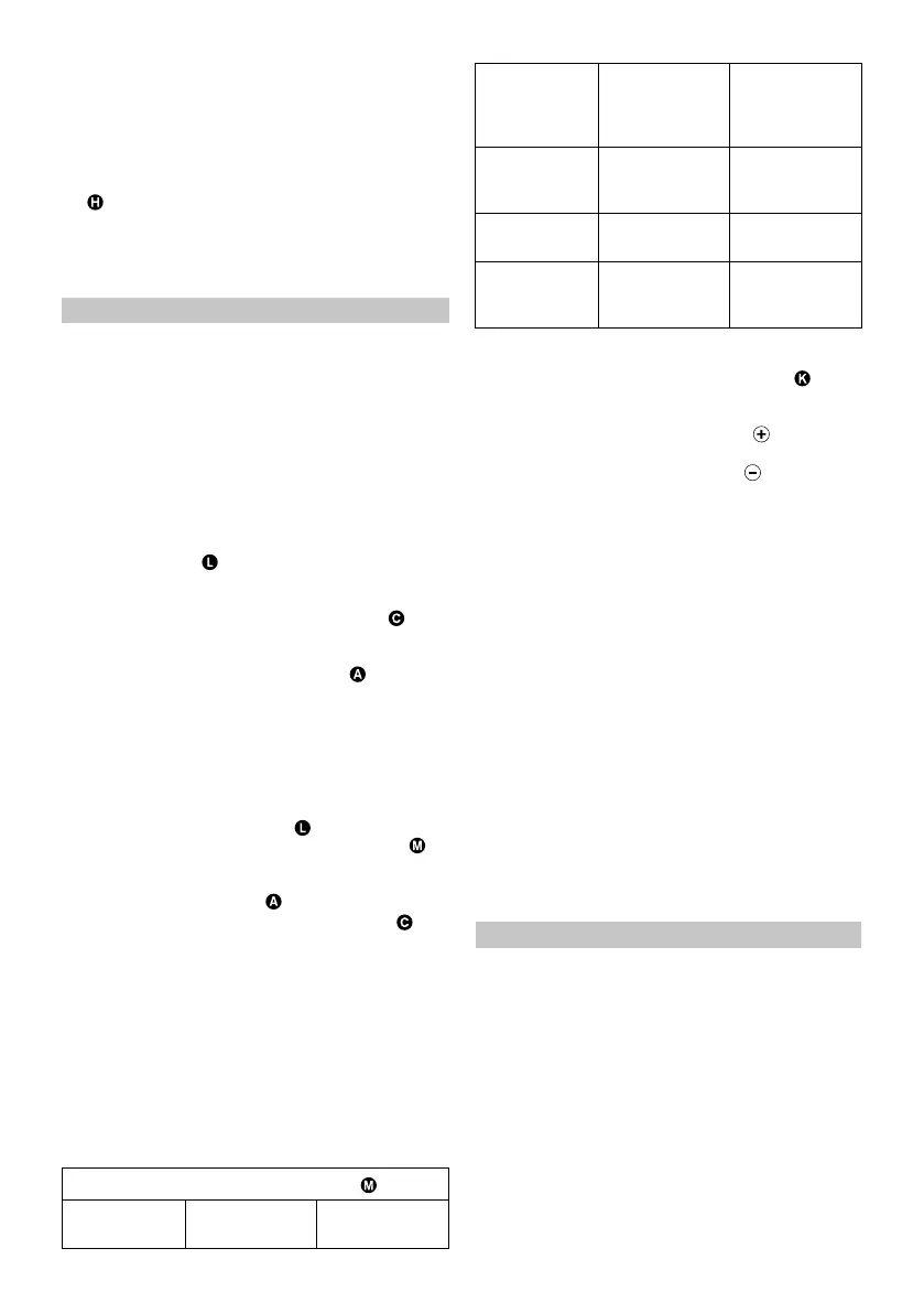 L’outil est équipé d’un voyant témoin LED (M) pour