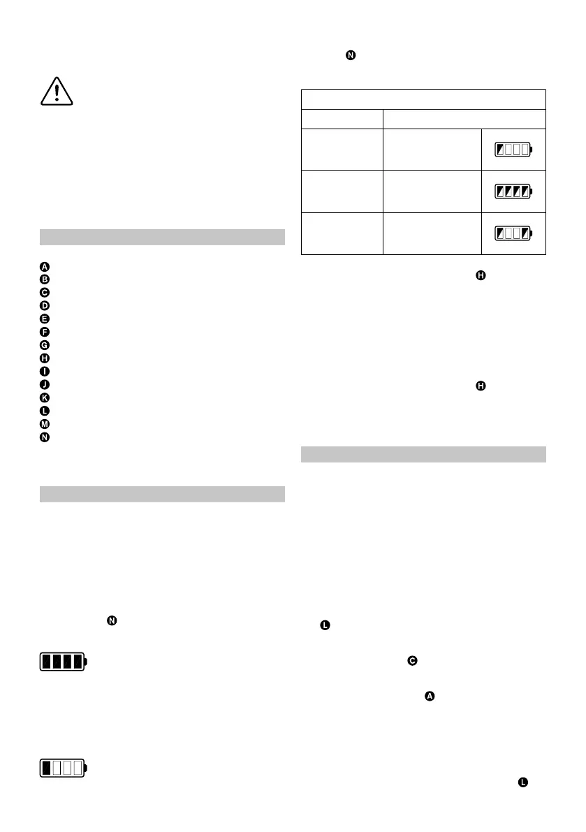 De indicatie wordt ingeschakeld wanneer een accu in