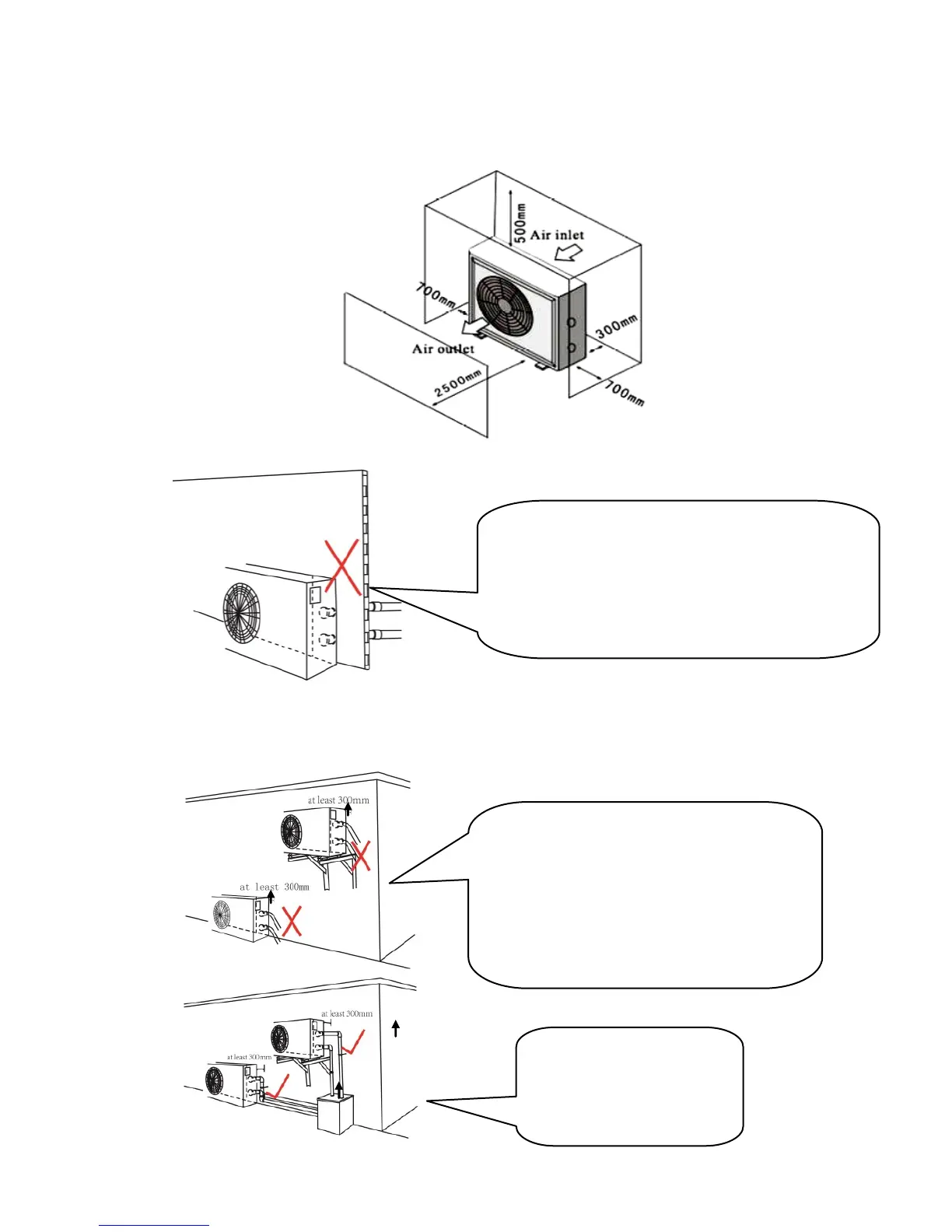 tepelného čerpadla. To umožňuje bohatý přístup vzduchu. Volná vzdálenost nejméně 800 mm na výstupu