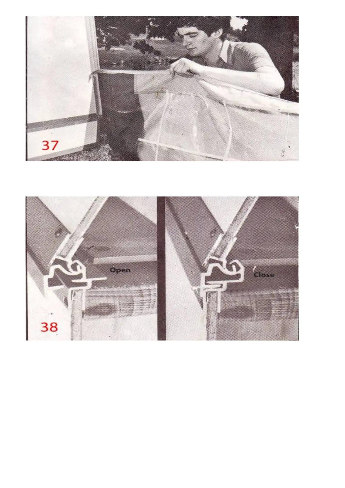 rail from the inside by pressing down the four spring clips. Put the supporting poles and side