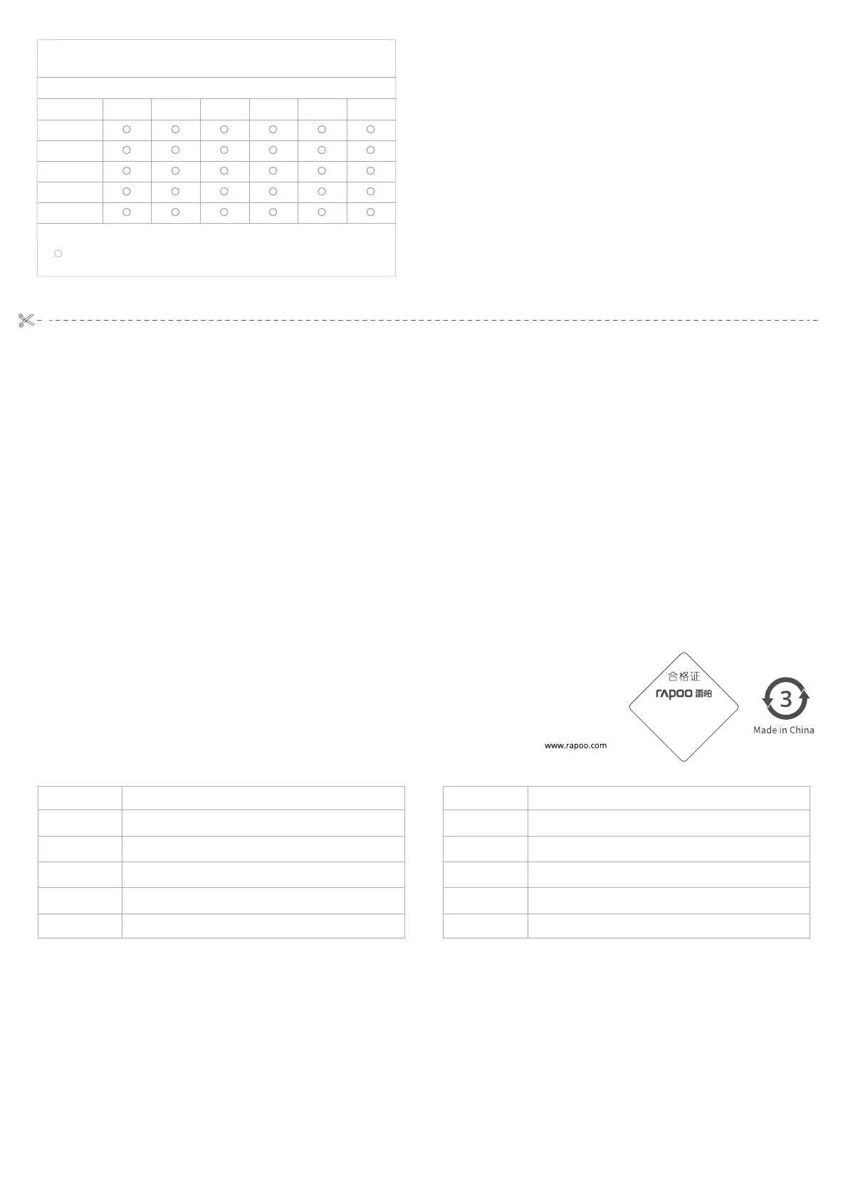 See www.rapoo.com for latest FAQs, drivers and quick start guide. For extensive service, register at www.rapoo.com.