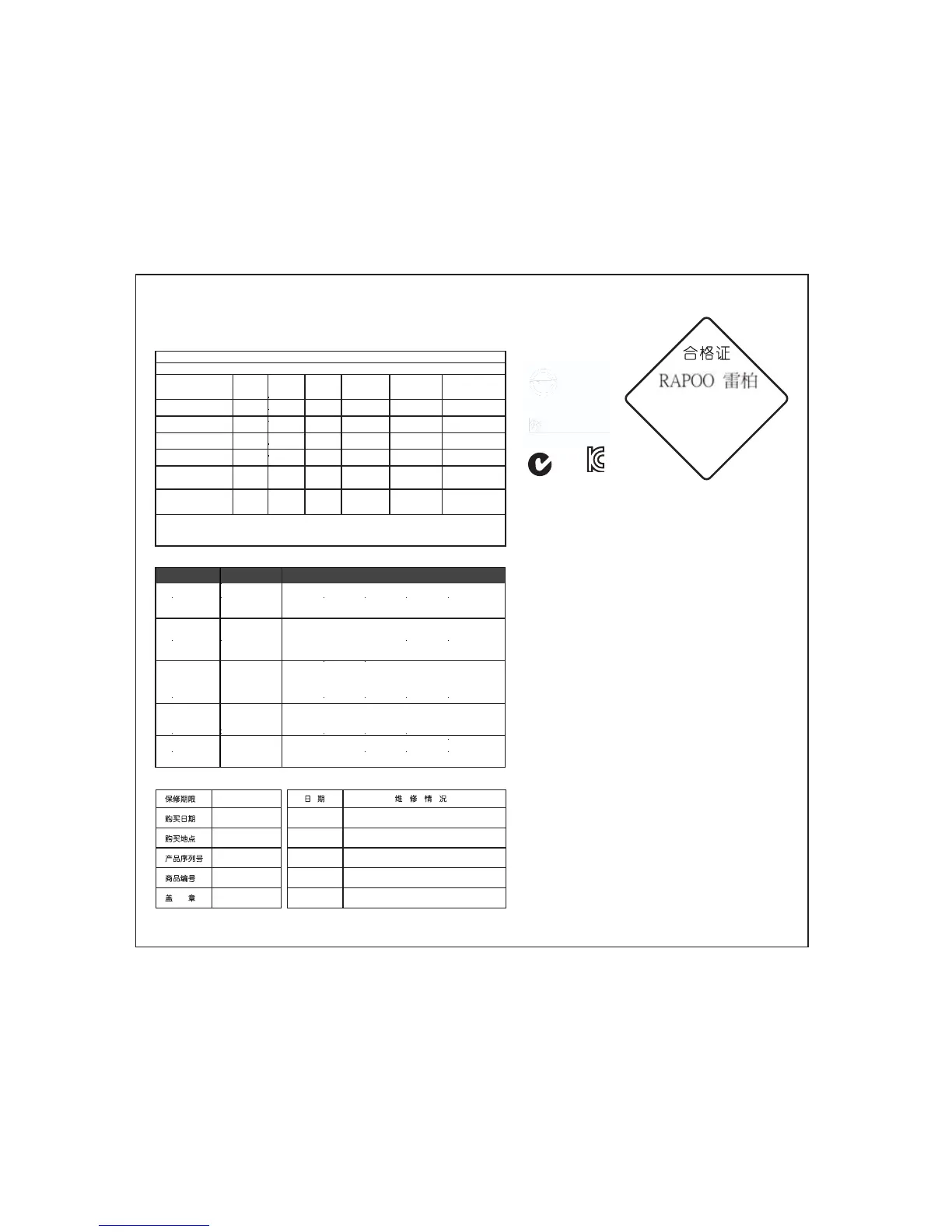 다. 자세한 내용은 www.rapoo.com/warranty을 참조하십시오.