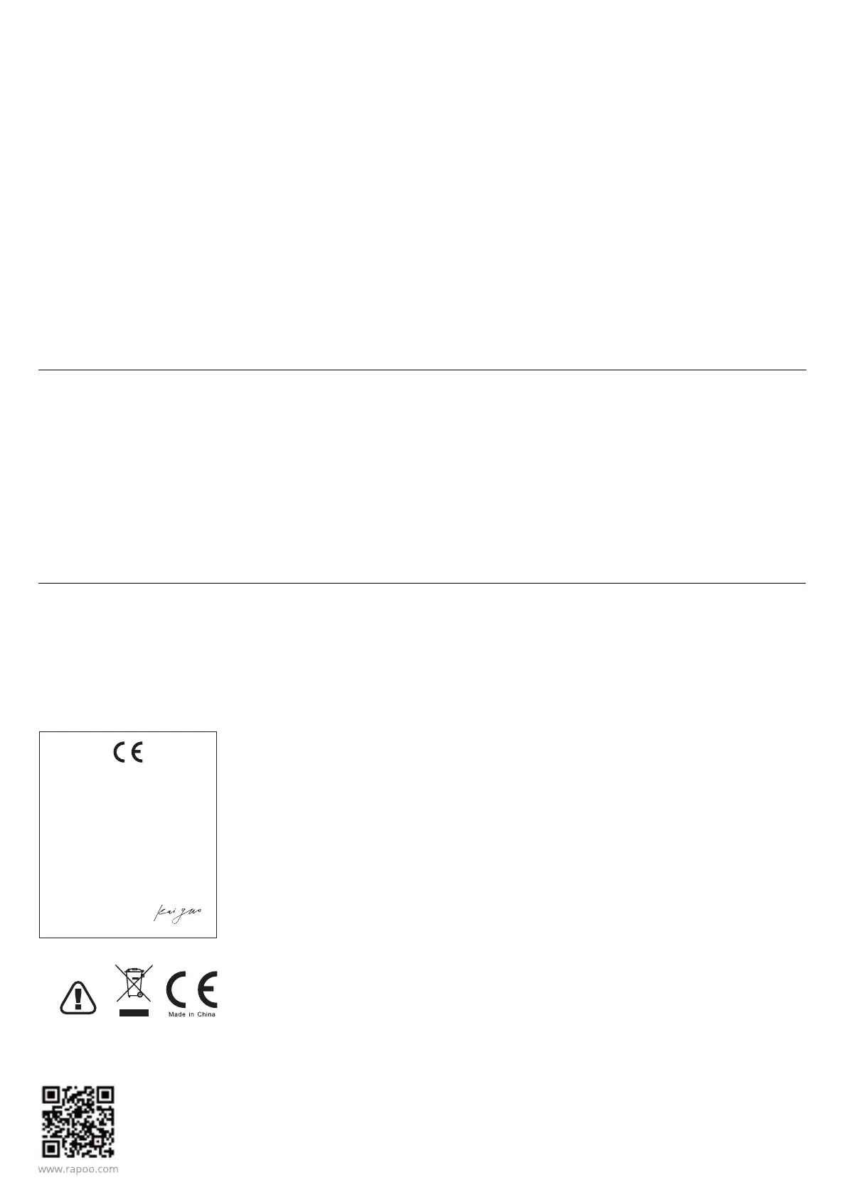 L'appareil est fourni avec deux ans de garantie matérielle limitée à compter du jour d'achat. Merci de consulter www.rapoo.com pour plus d'informations.