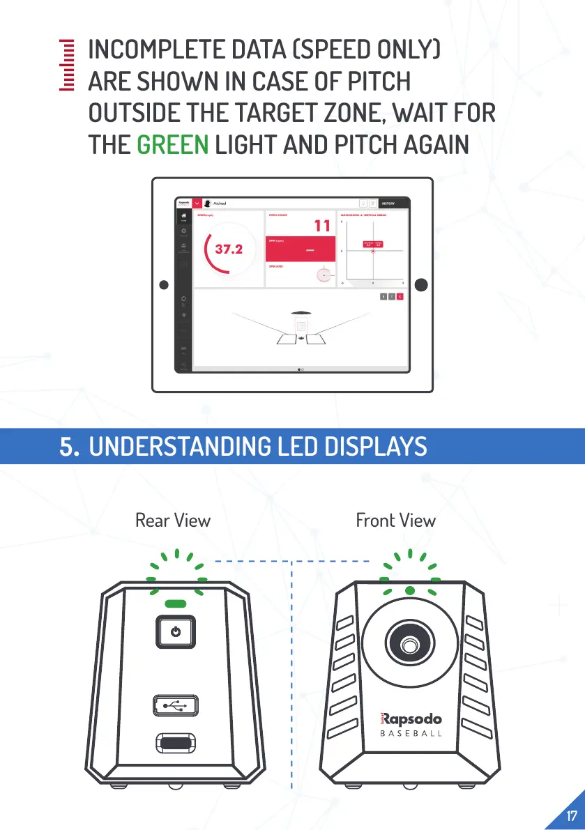 Rapsodo Baseball - HANDLING INCORRECT PITCHES; UNDERSTANDING LED DISPLAYS