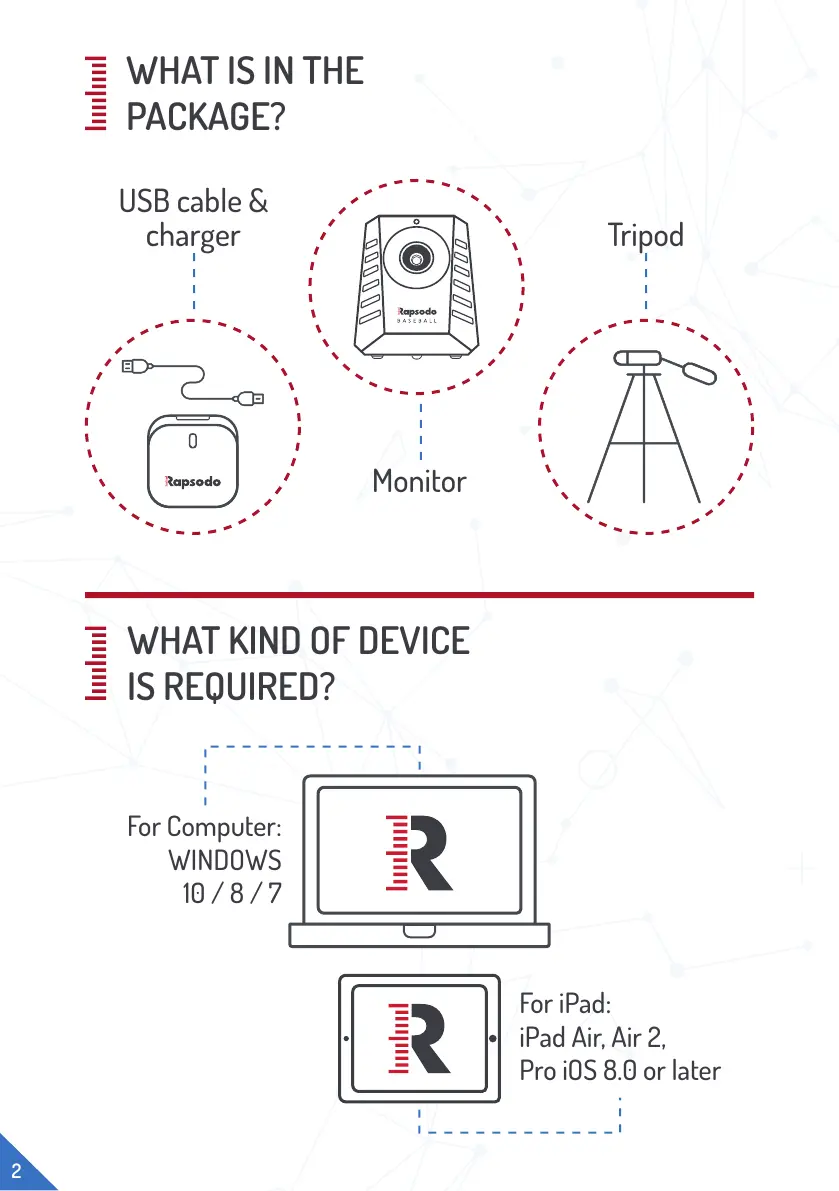Rapsodo Baseball - WHAT IS IN THE PACKAGE?; WHAT KIND OF DEVICE IS REQUIRED?