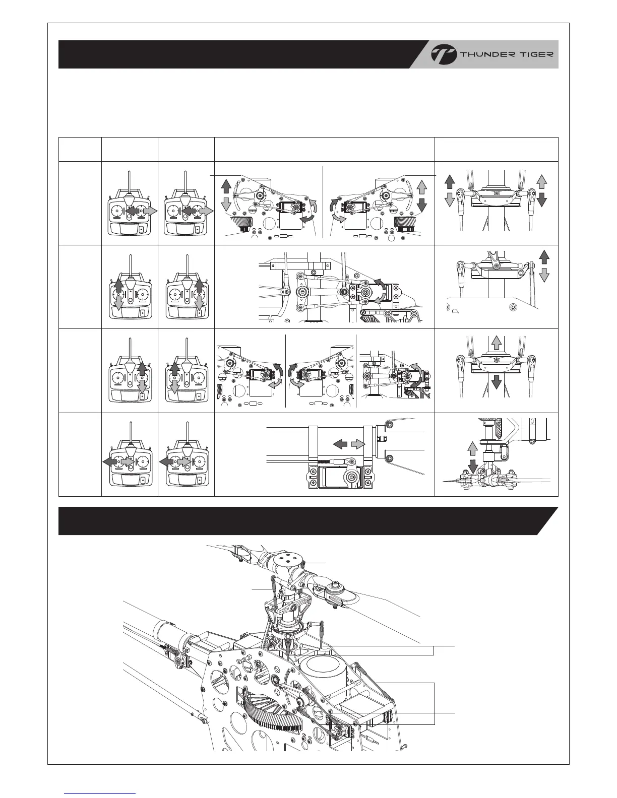 illustrations below to check the direction of servo & swashplate with a given transmitter input. Adjust the servo reversing