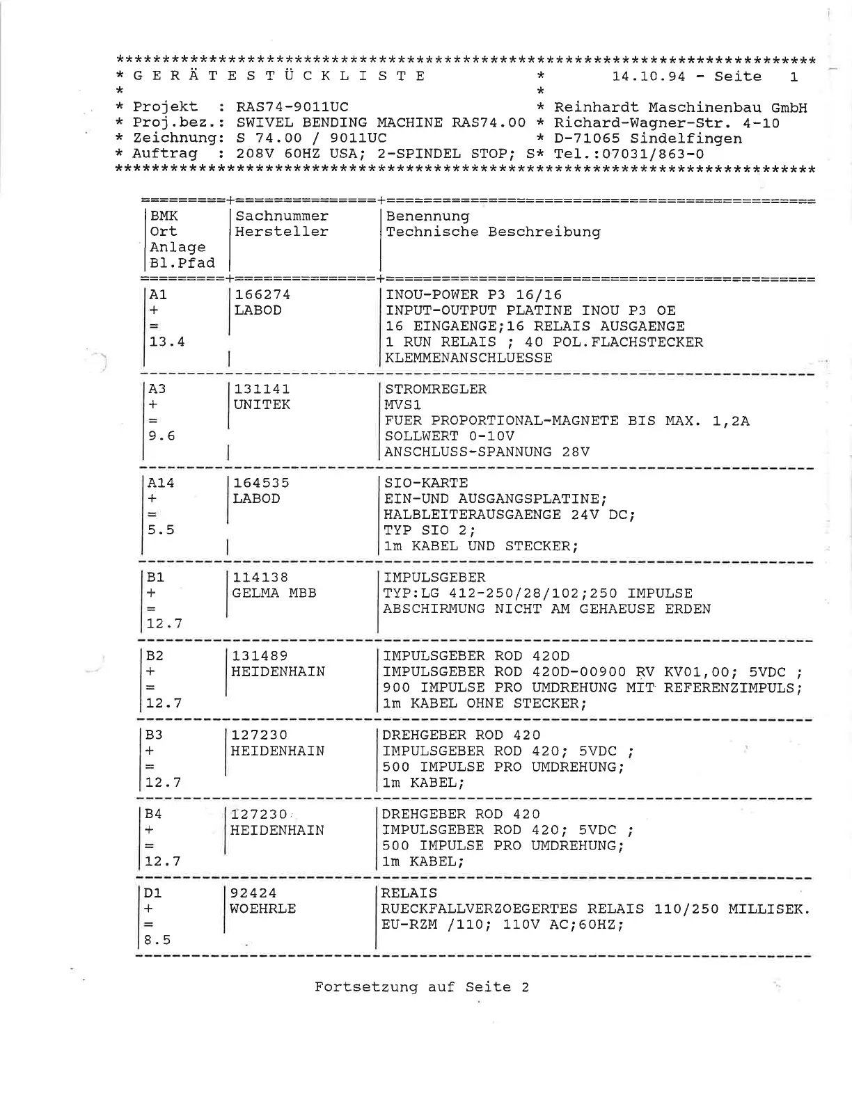 Auftragf : 208V 60HZ USA; 2-SPINDEL STOP;