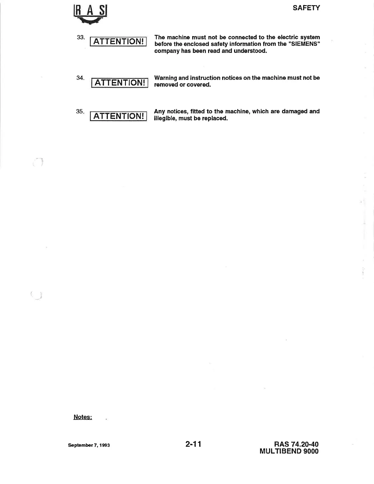 Any notices, fitted to the machine, which