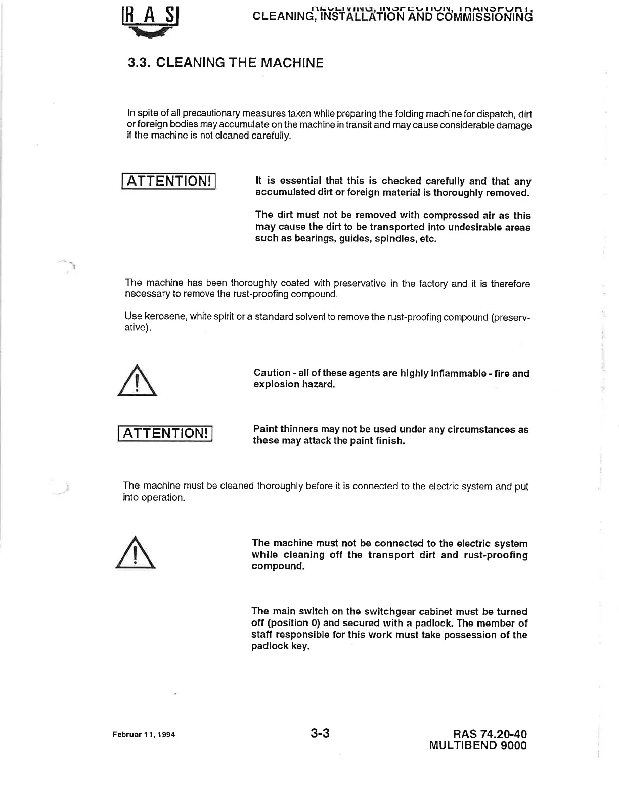 machine must be cleaned