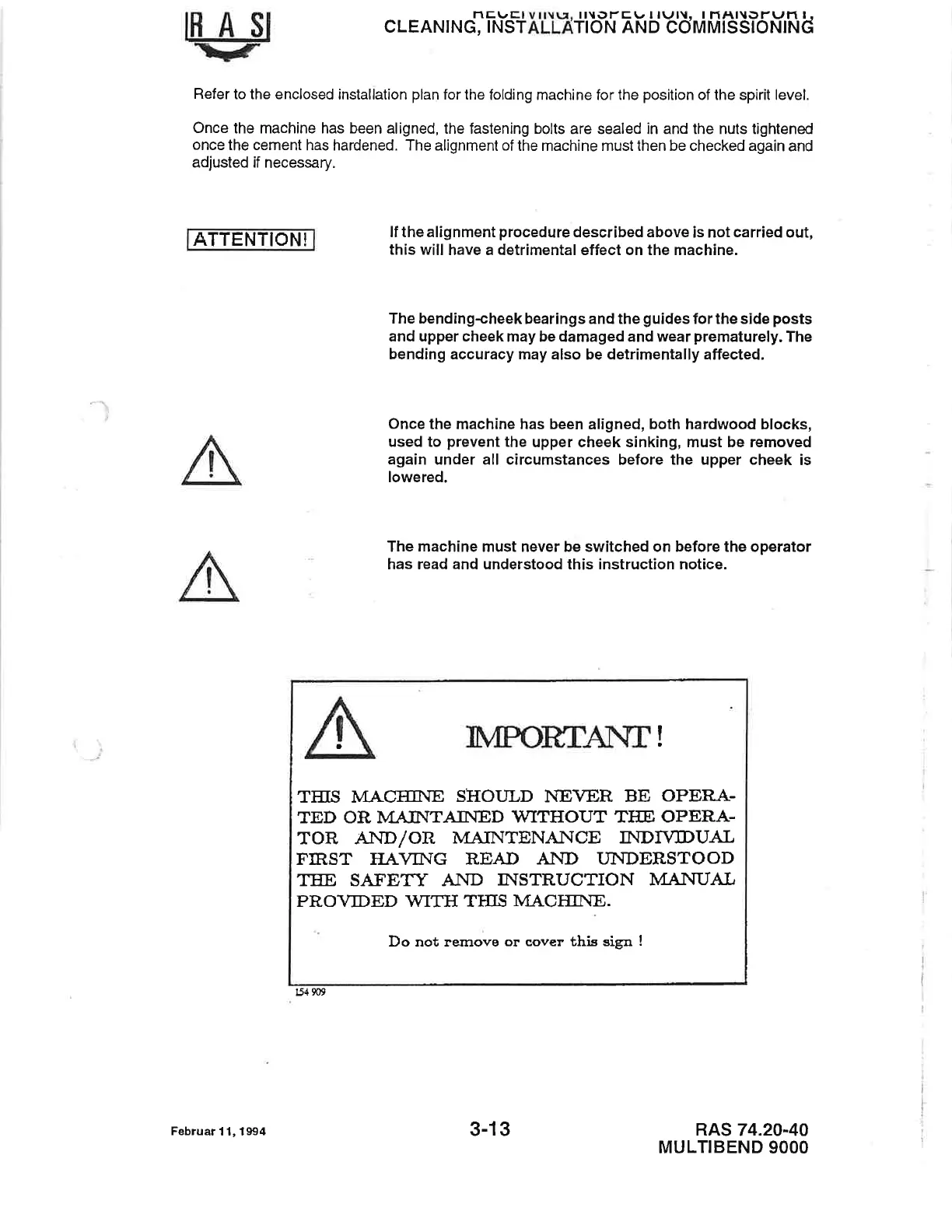 The machine must never be switched on before the operator