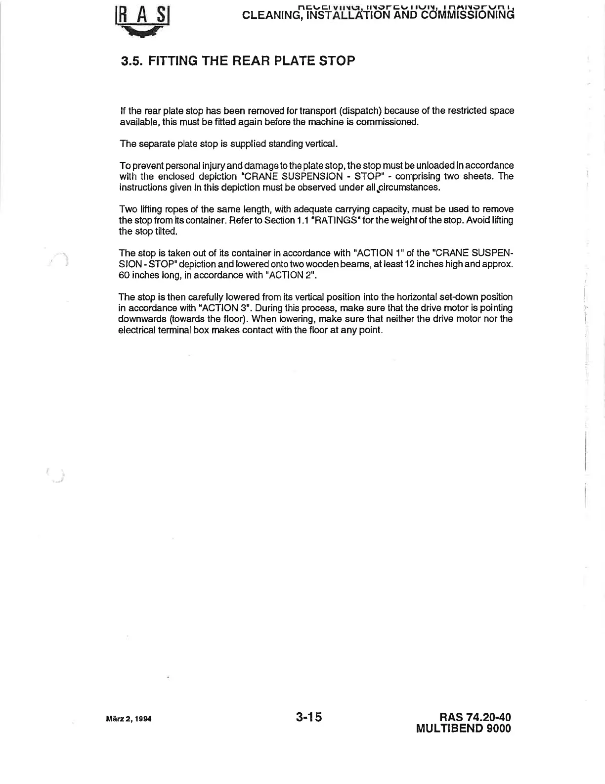 thestopfromitscontainer.RefertoSectionl.l "RATINGS"fortheweightofthestop.Avoidlifiing