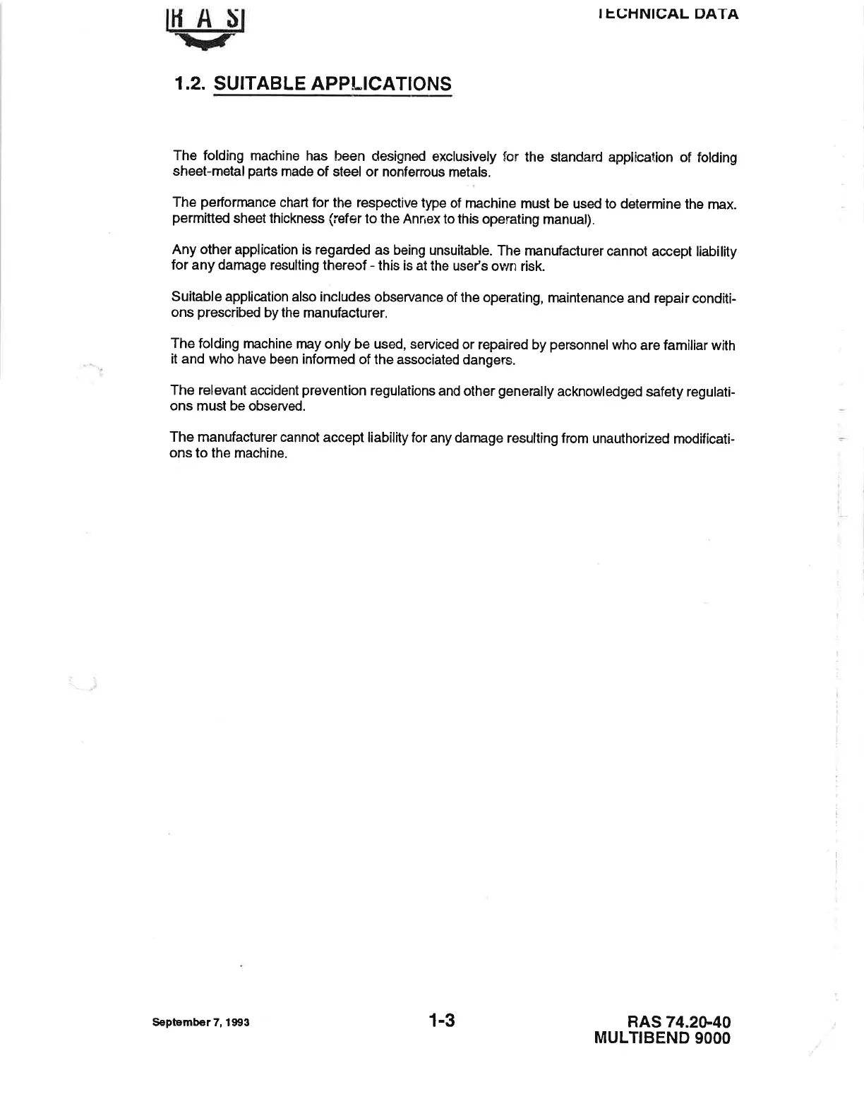 RAS MULTIBEND 9000 - 1.2 Suitable Applications
