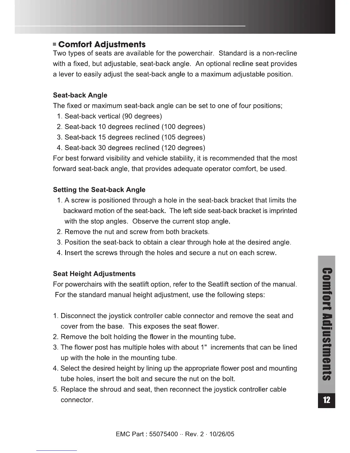Rascal 318 - Comfort Adjustments