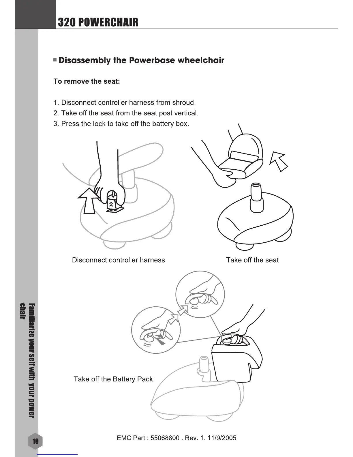 Rascal 320 - Disassembly the Powerbase Wheelchair; To Remove the Seat