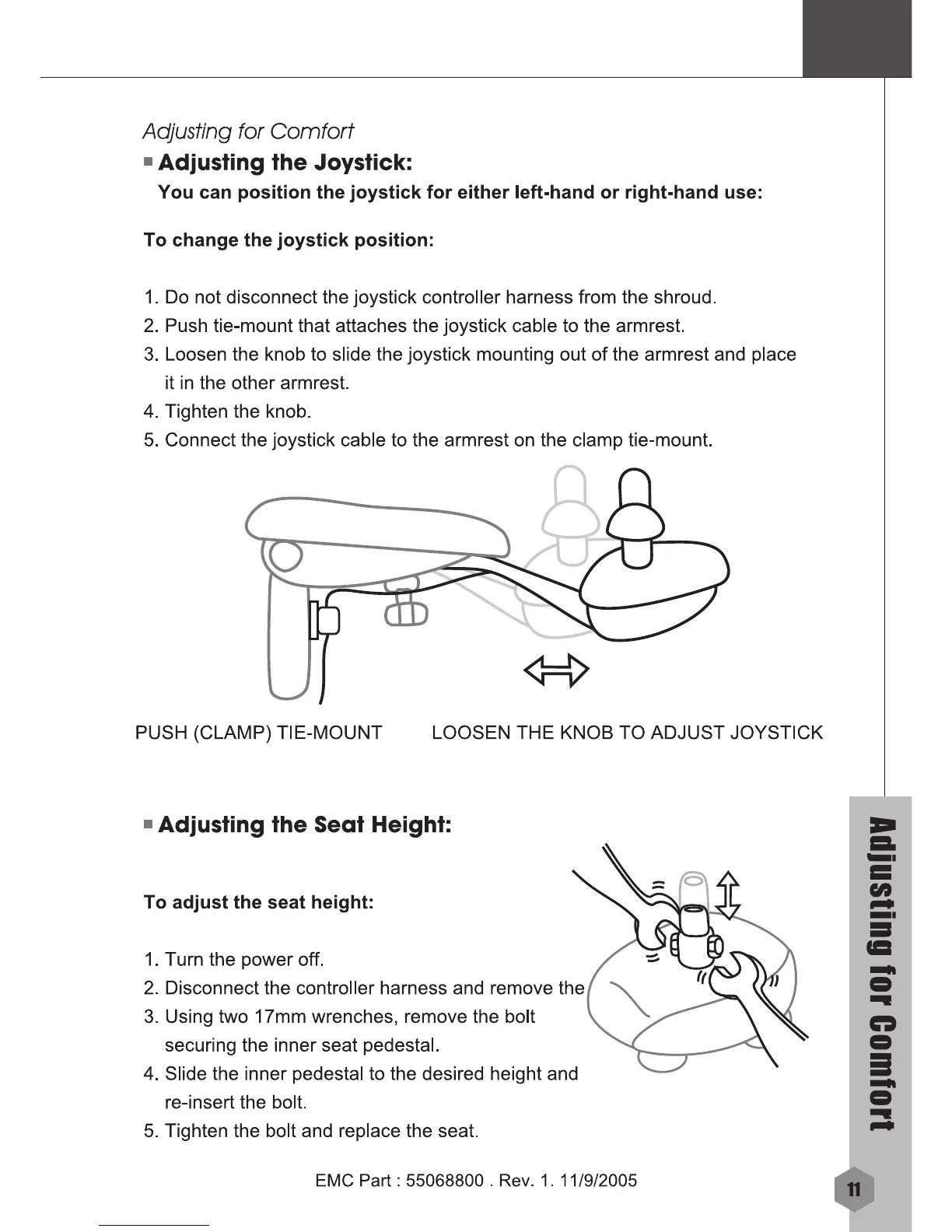 Rascal 320 - Adjusting Your Powerchair for Comfort; How to Adjust the Joystick Position; Adjusting the Seat Height