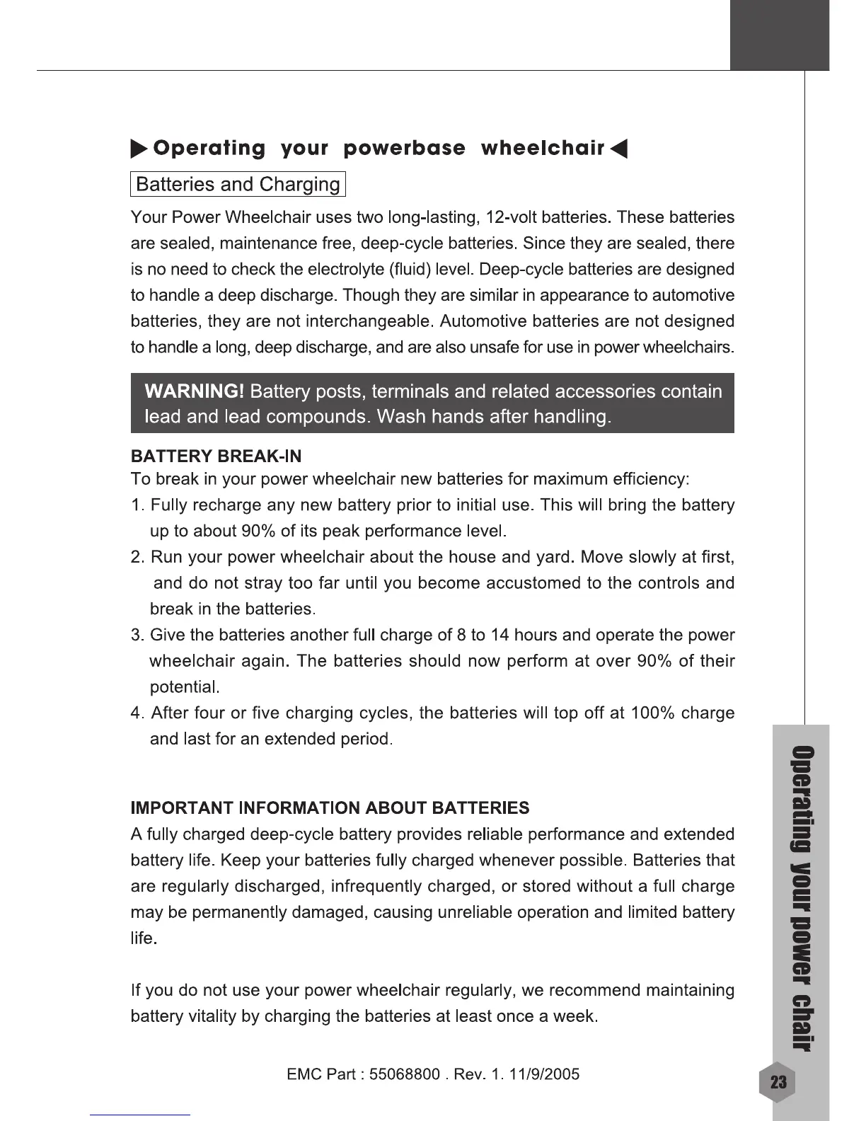 Rascal 320 - Powerchair Batteries and Charging; Important Battery Care Information