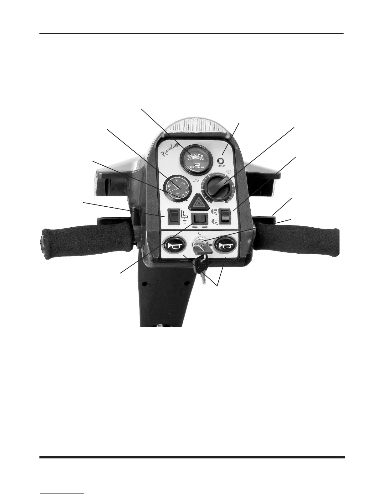 The Rascal Scooter includes the following controls used for its operation. These controls are shown in