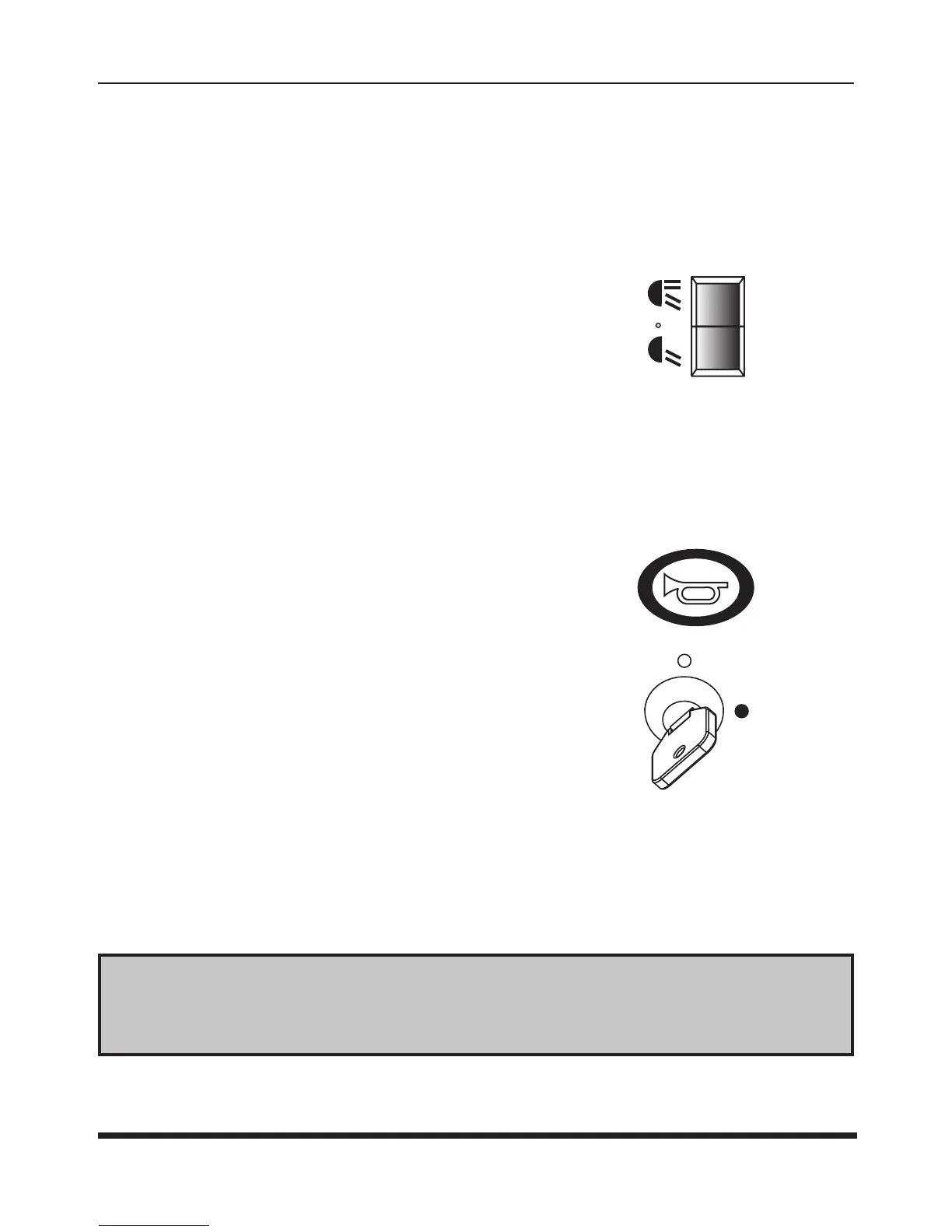 and turning it to the right turns power “On.” Turning it to the left (key upright) turns power “Off.”