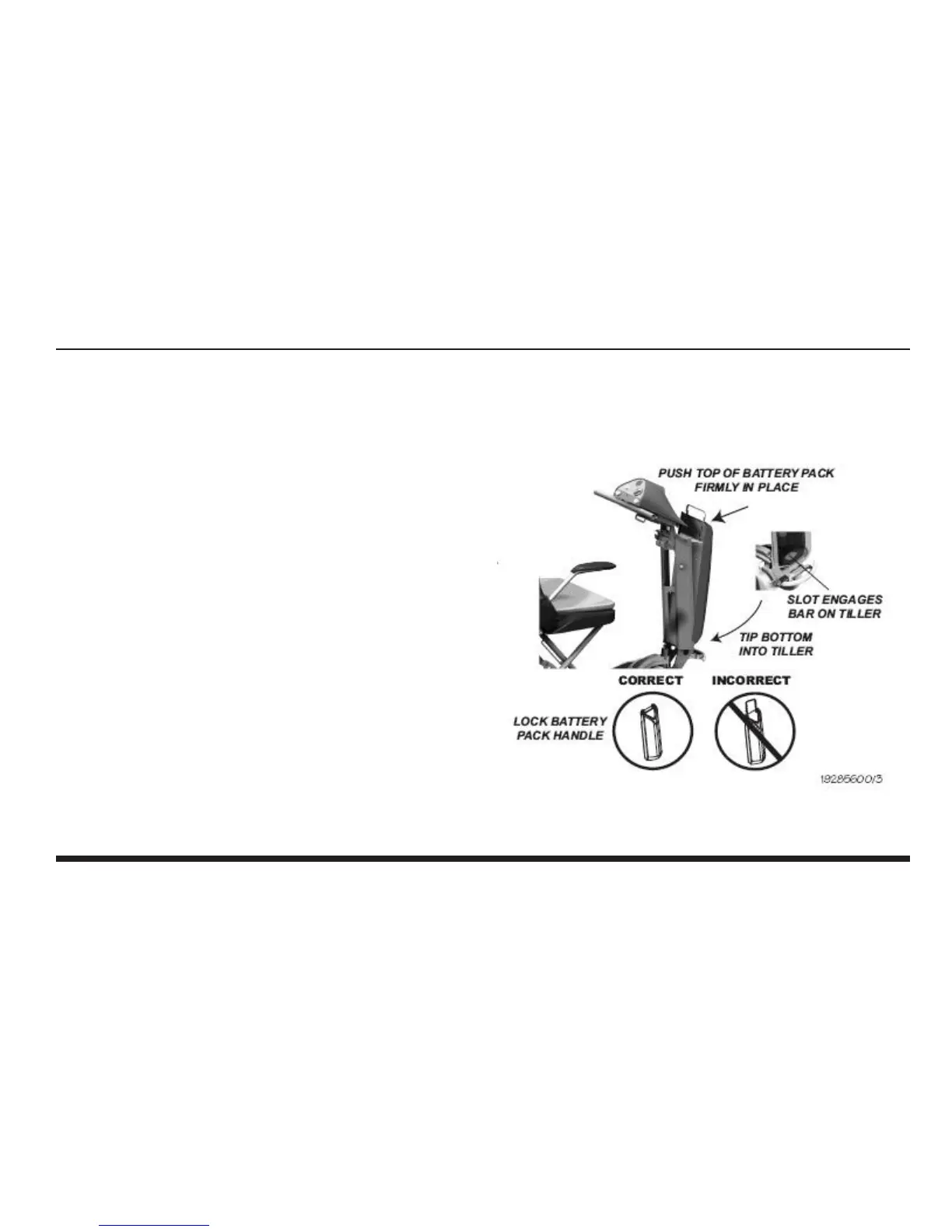 After the batteries have been fully charged, you’ll be ready to install the Battery Pack into the Tiller. Install the battery