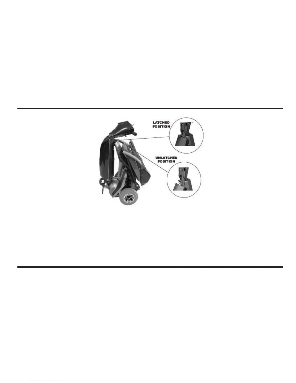 6. When fully folded, latch the frame and tiller together by pressing the tiller back against the main frame, see