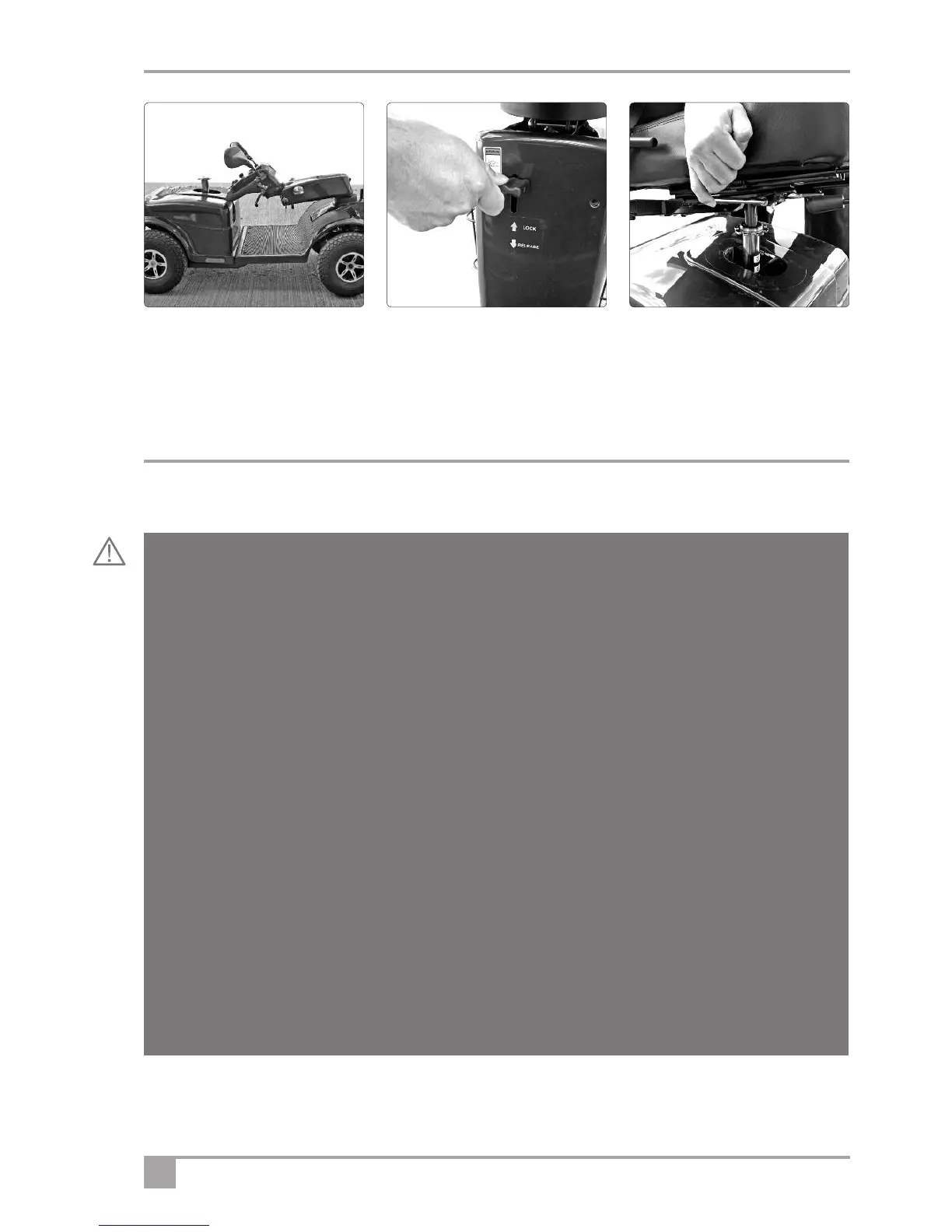 chassis. Ensure it is fully engaged, the seat does not rock or rotate, and the seat lever has engaged so