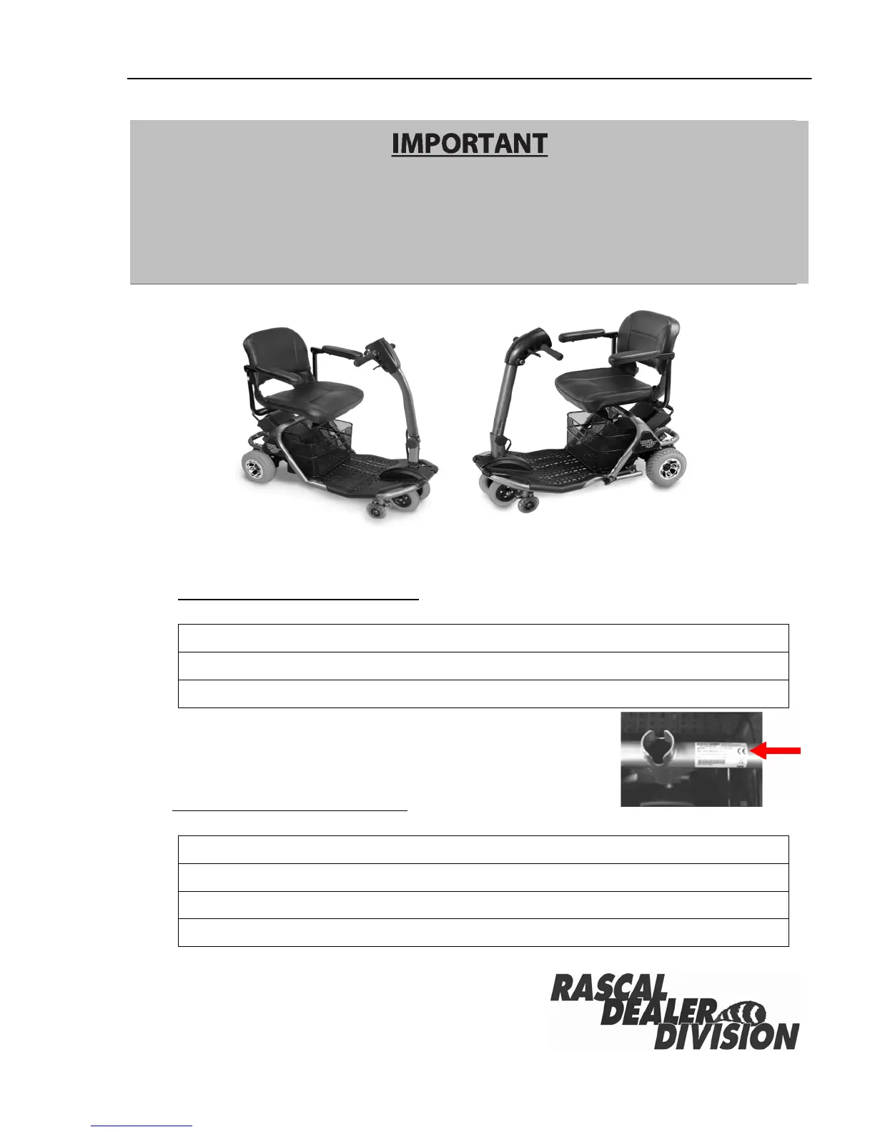 For warranty service, please contact your Rascal Mobility