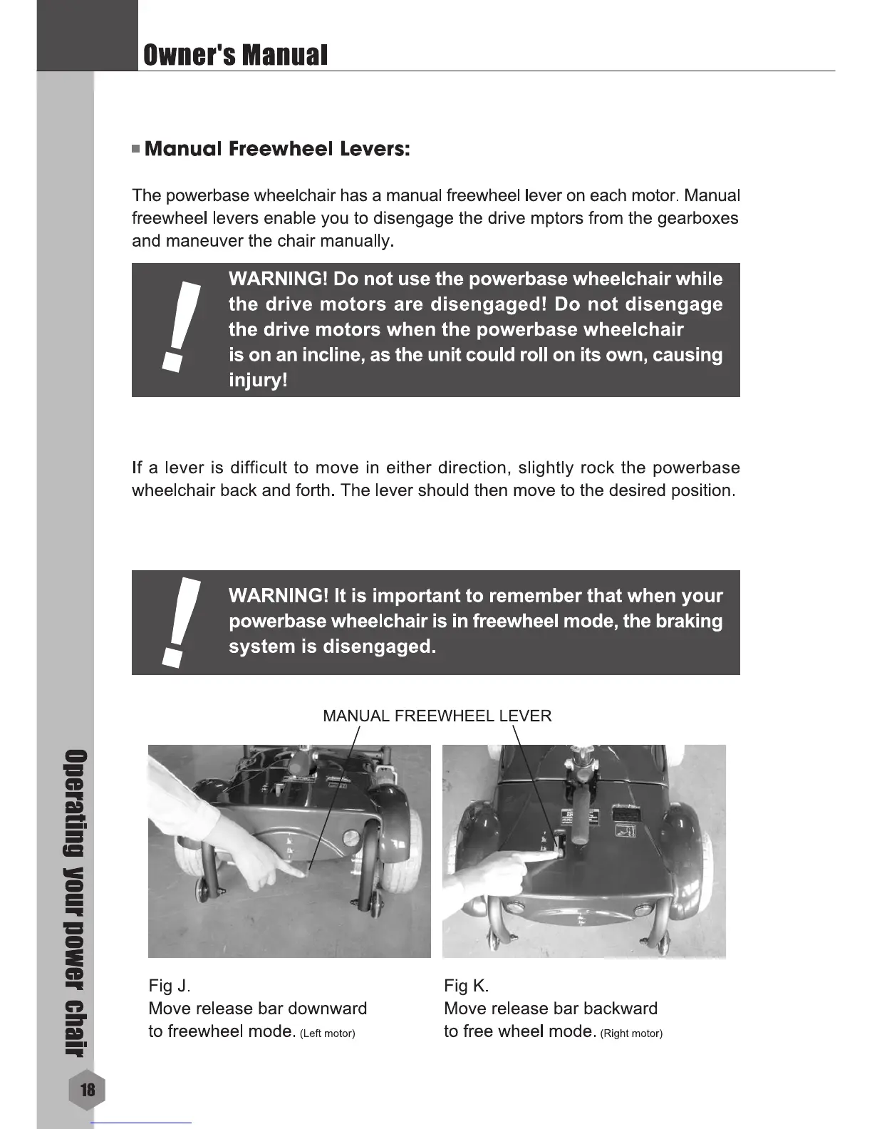 Rascal P321 - Operating Your Powerbase Wheelchair; Manual Freewheel Levers