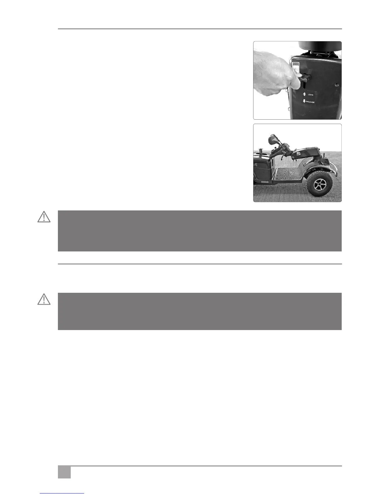 comfortable driving position. Once in position, ensure the tiller is locked.