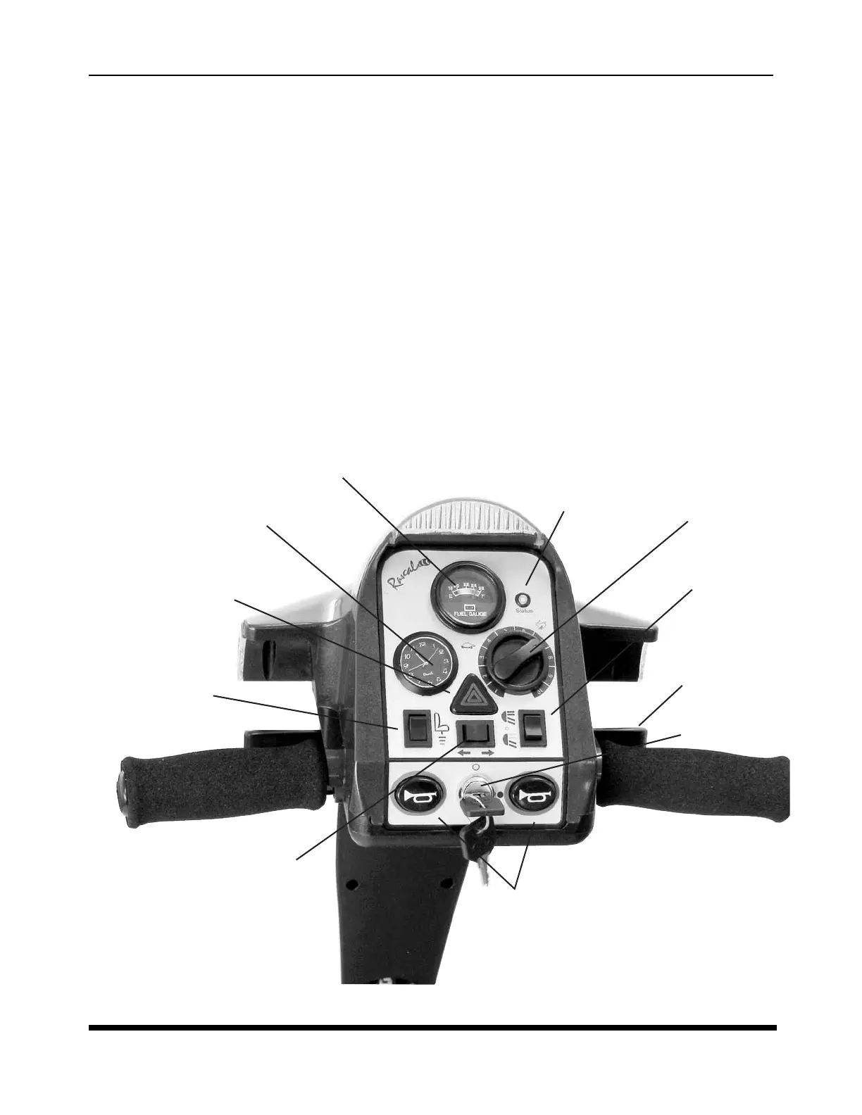 The Rascal Scooter includes the following controls used for its operation. These controls are shown in