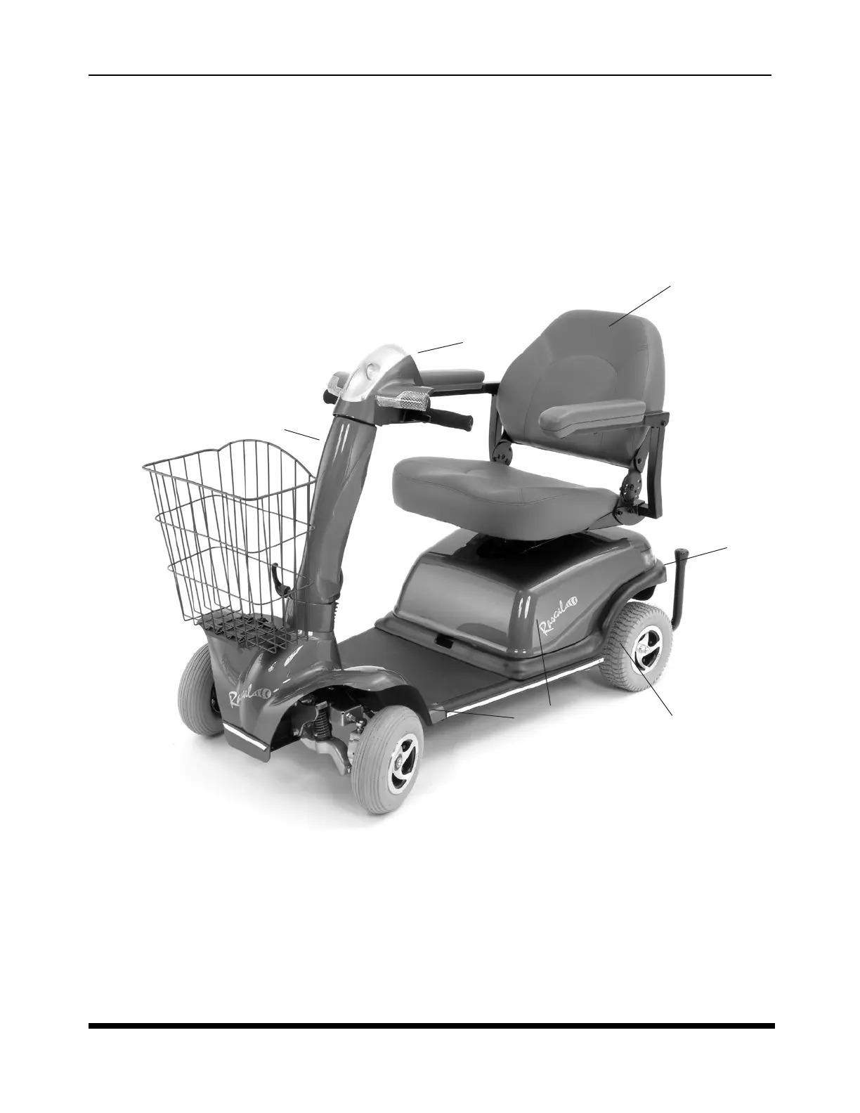 Rascal R6 300 Series Scooters consists of the following major components, as shown in Illustration 1. You
