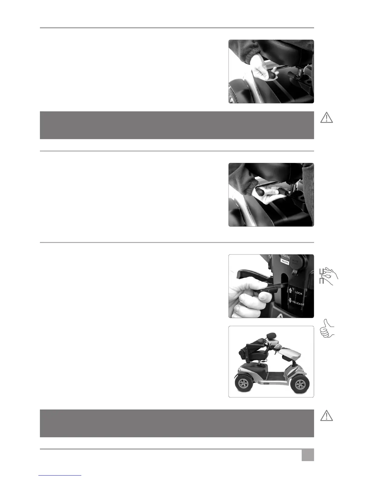 Warning! Before driving, always check that the tiller is securely in the upright driving position. Safe steering