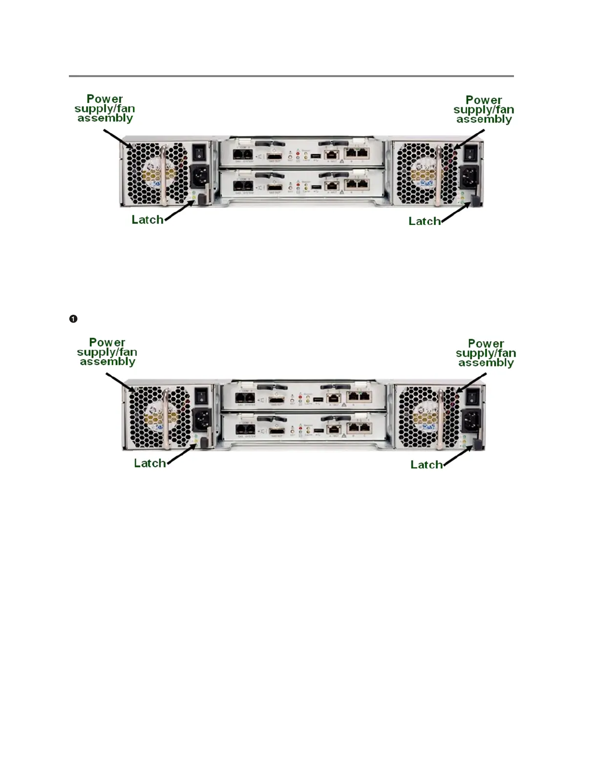 Press the latch and pull the handle to remove the Power Supply/Fan assembly.