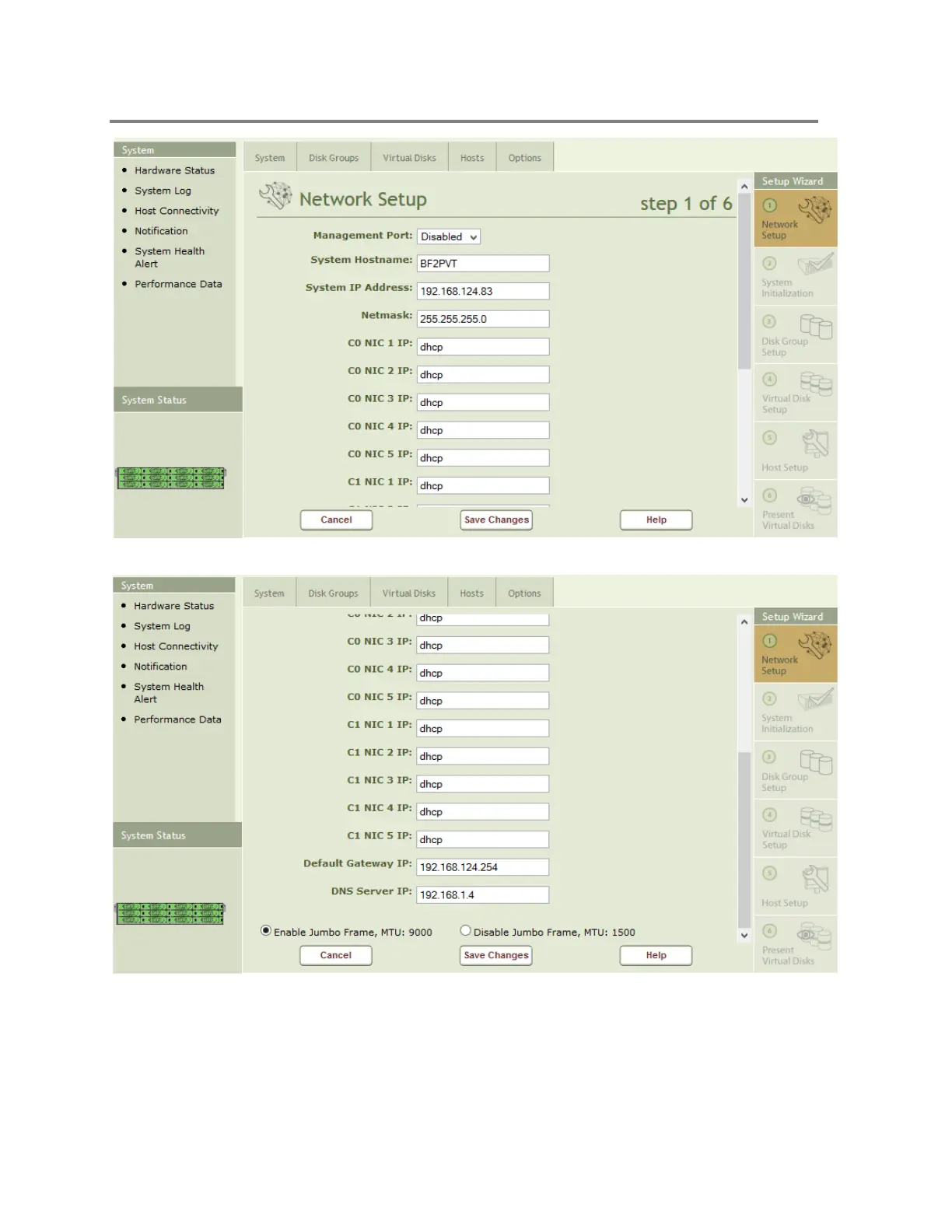 Rasilient PixelStor 5000 - Figure 4-10 Network Setup - Top of Page; Figure 4-11 Network Setup - Bottom of Page