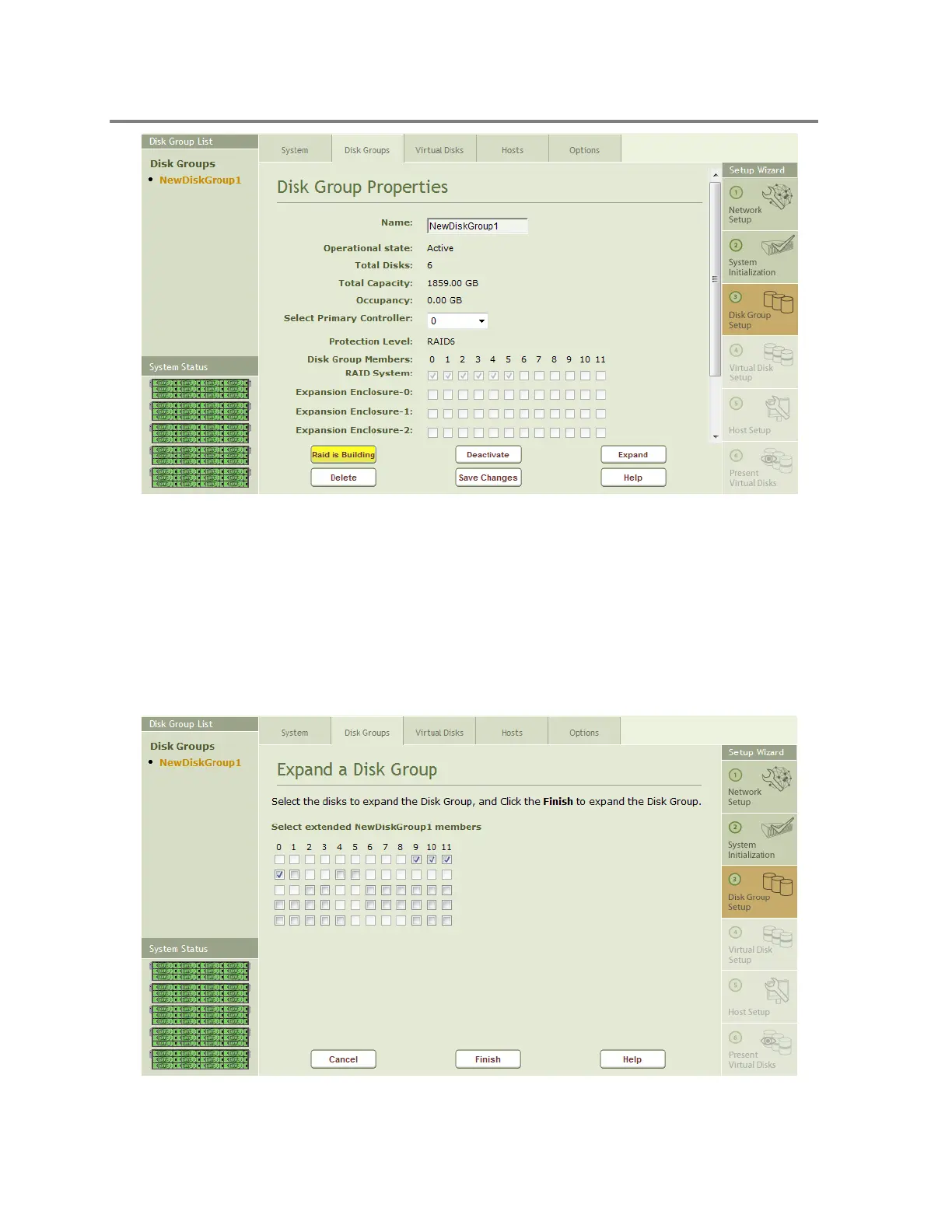 To expand a Disk Group, select the Disk Group you wish to expand from the Disk Group List on
