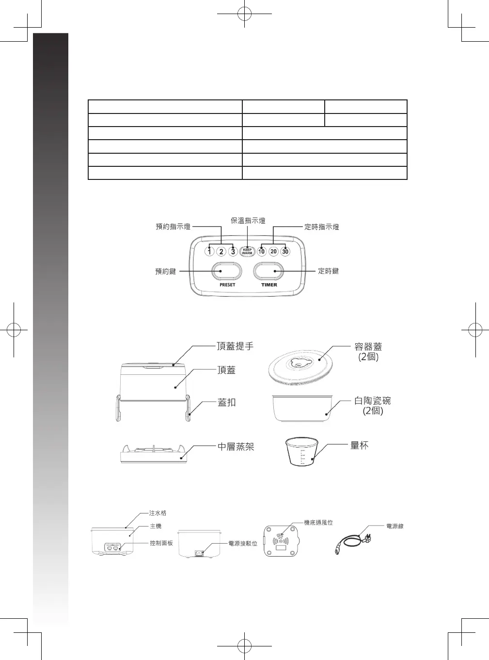 4. 控制面板及產品結構