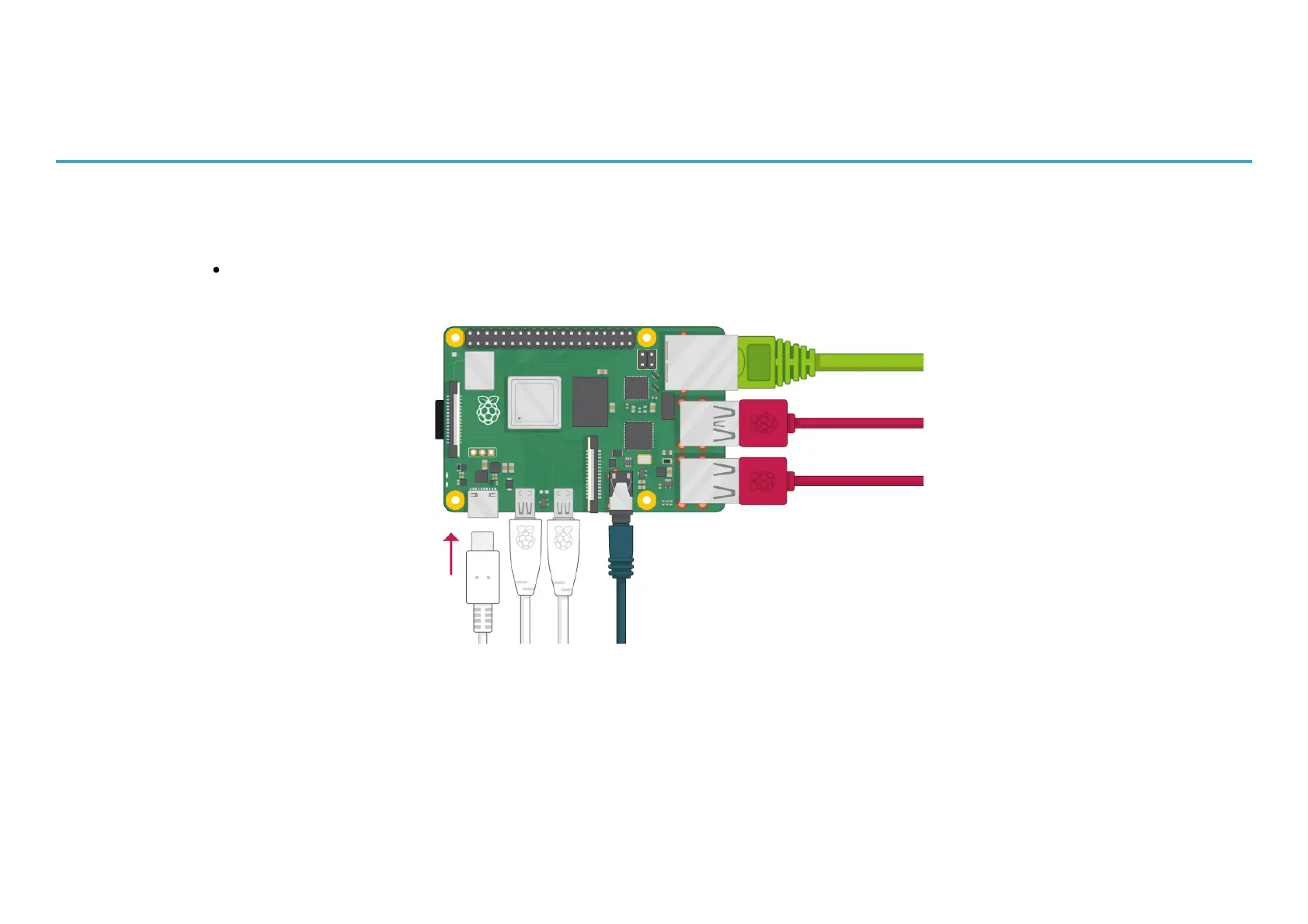 Your Raspberry Pi doesn’t have a power switch: as soon as you connect it to a power outlet, it will turn on.