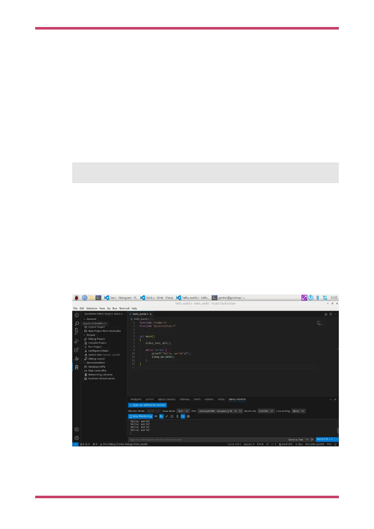 Although the "Hello World" example is now running, we cannot yet see the text.
