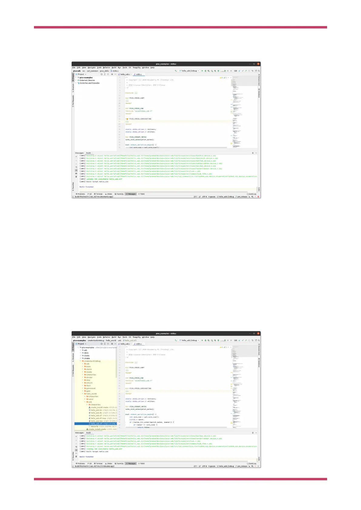 was auto selected when you chose hello_usb before). You can visually see in the stdio.c file that has been opened by the