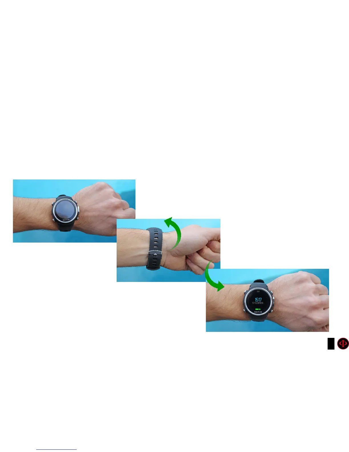 Rotate the wrist as shown in the picture to wake up the iDive Color.