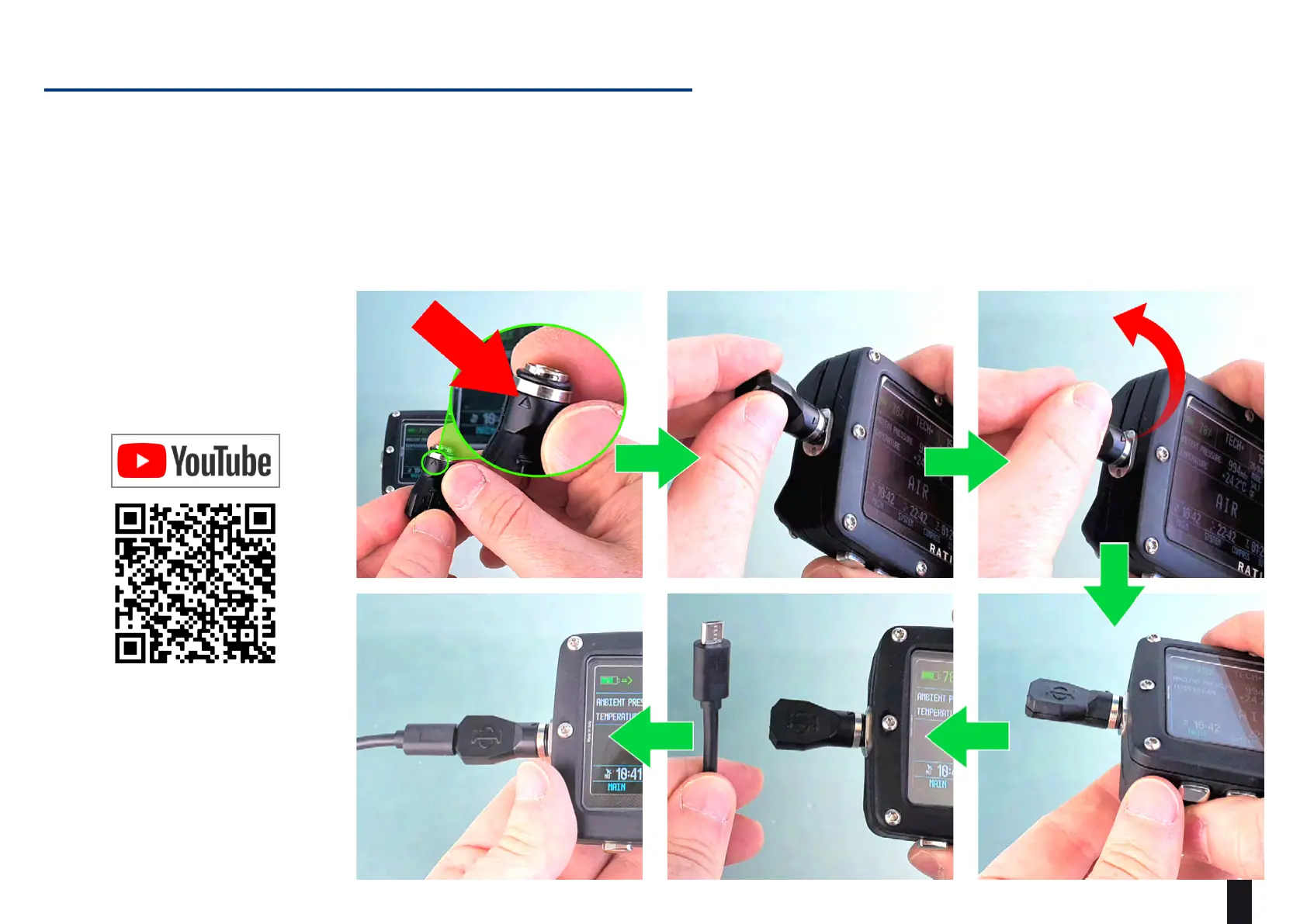 ATTENTION: A complete charge cycle is necessary before the device first use.