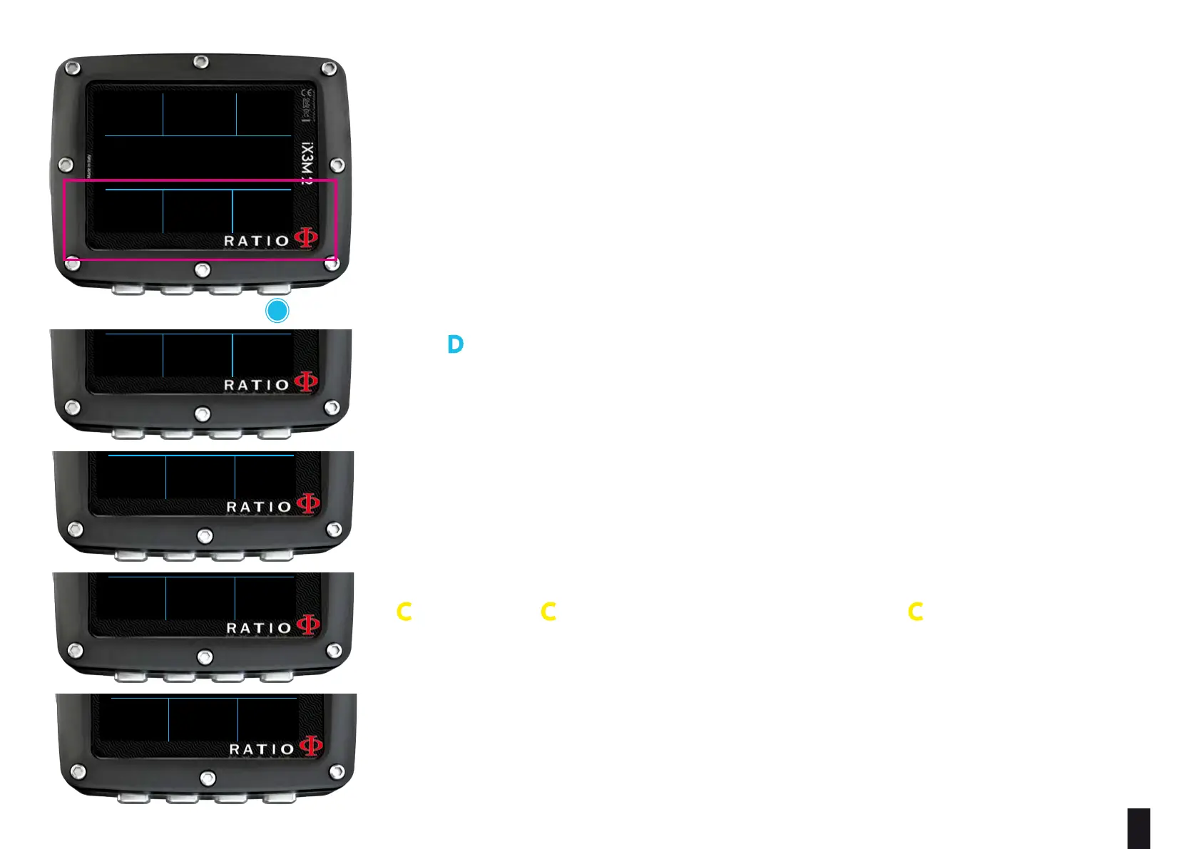 OC MIX: Indicates the current dive mode (OC= Open Circuit or CCR = Closed