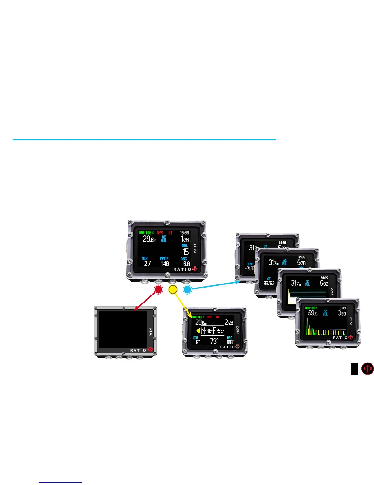 When the iX3M is in the main screen or if it is switched off, it activates the dive mode automatically, once a certain depth is
