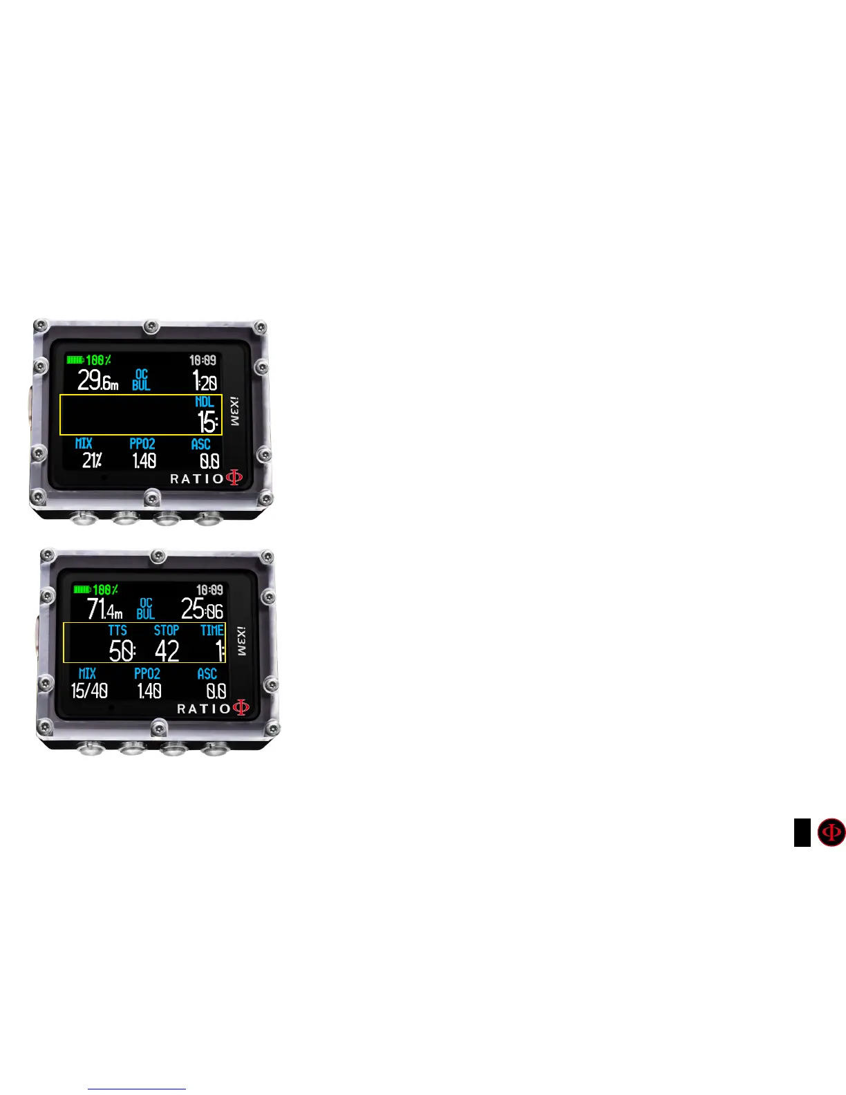 Thanks to its Real Time algorigthm, the iX3M can adjust itself to the diver’s behaviour automatically, in case the